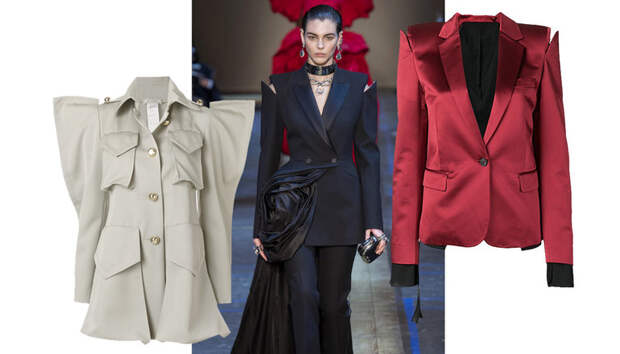 Простой способ добавить любому образу выразительности - надеть верх с острыми плечами. Это может быть жакет, как у Unravel Project и Helmut Lang, куртка, как у Rubin Singer, или же и вовсе мини-платье, как у Alex Perry и Balmain, - выбор только за вами.