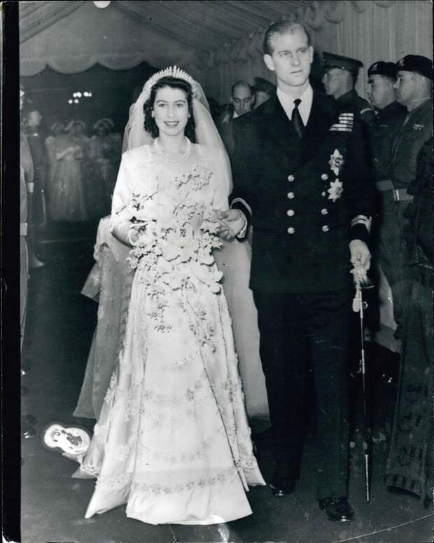 Королева Великобритании вышла замуж 20 ноября 1947 года, тогда около Букингемского дворца тысячи желающих поджидали молодоженов, а трансляцию смогли прослушать около 20 миллионов человек. Роскошное платье Елизаветы II с четырехметровым шлейфом вошло в историю: наряд был расшит изысканными цветами жасмина, белой розы и флердоранжа.