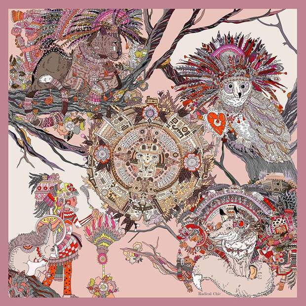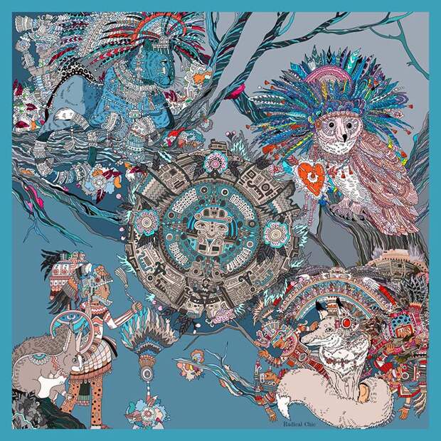 Бренд Radical Chic представил интересную новинку – платок с экзотическим принтом, рассказывающим о древней цивилизации Майя. На два шелковых аксессуара пыльно-розового и лазоревого цветов нанесен знаменитый круглый календарь, вокруг которого расположены изображения животных, а также традиционные орнаменты. Вся коллекция поступит в продажу в августе, а пока дизайнеры Radical Chic продолжают свое модно-культурологическое исследование, погружаясь в особенности Пермского звериного стиля, рожденного древней цивилизацией Урала.