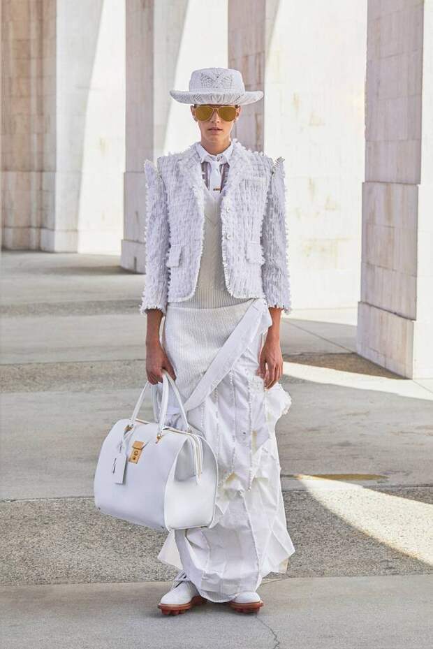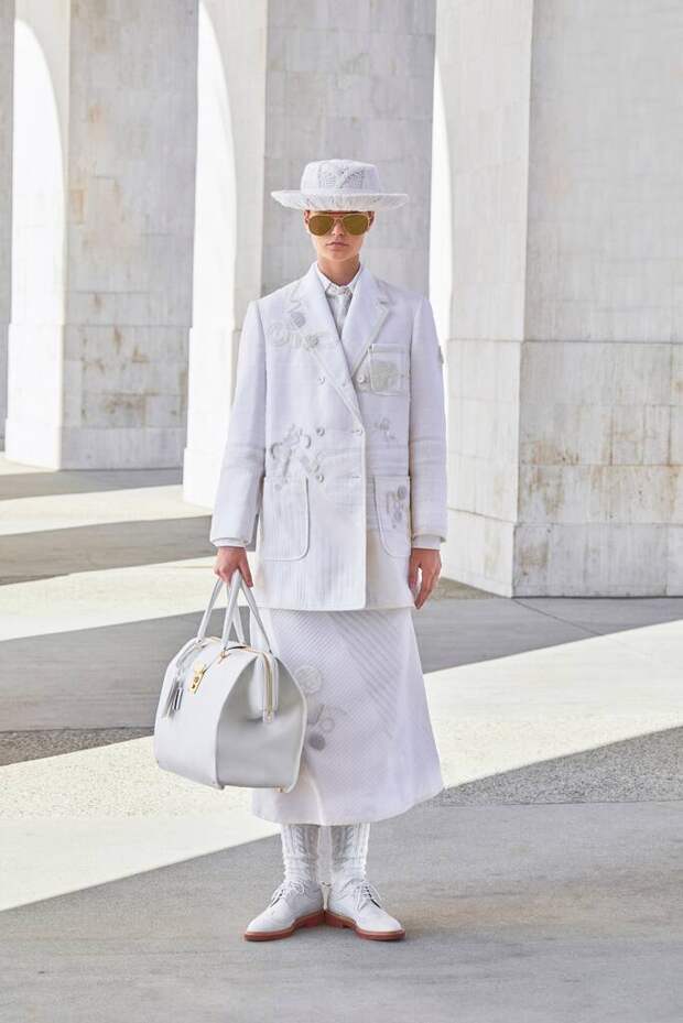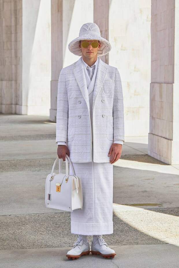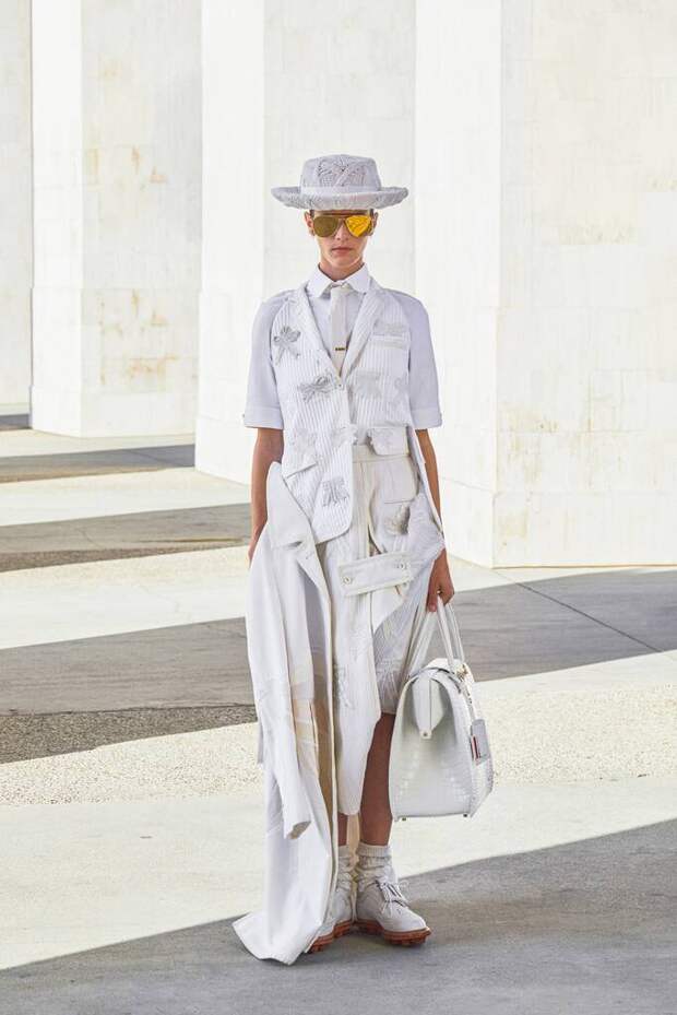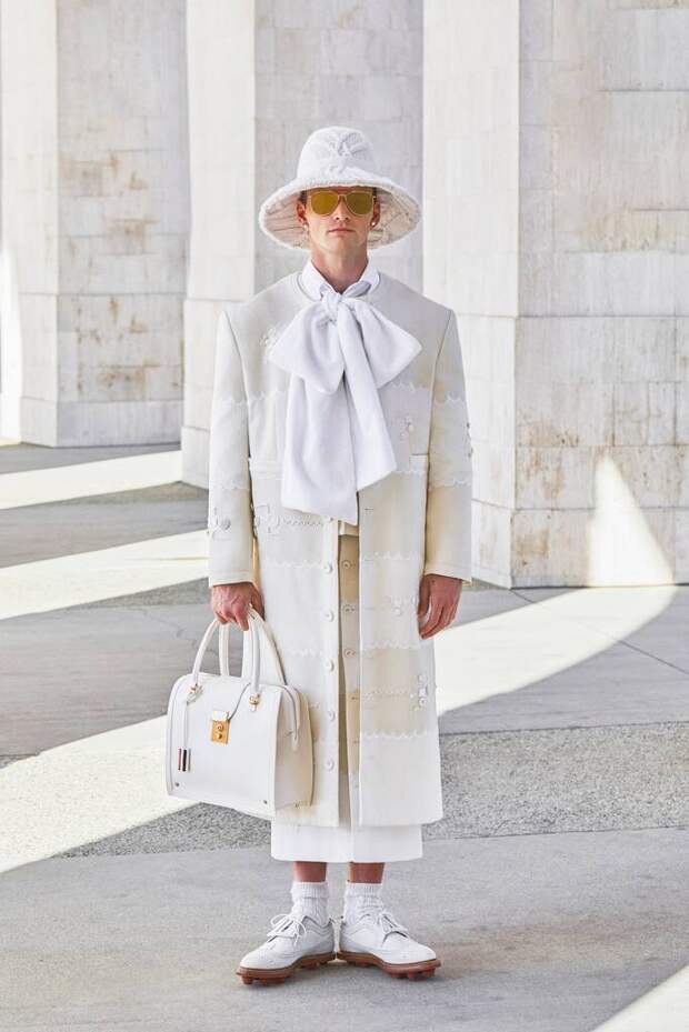 Пока одних дизайнеров карантин заставил мыслить более практично и приземленно, Том Браун все дальше и дальше заходил в своих фантазиях. Конечно, он не единственный избрал путь эскапизма. Но только он за вдохновением отправился так далеко. Впрочем, мы и не сомневались, что никакие трудности не смогут ограничить его неуемную фантазию.