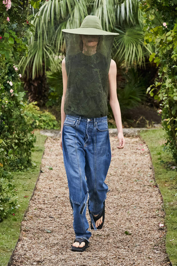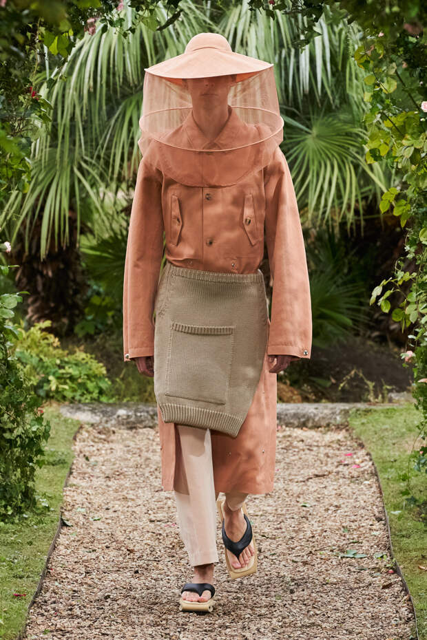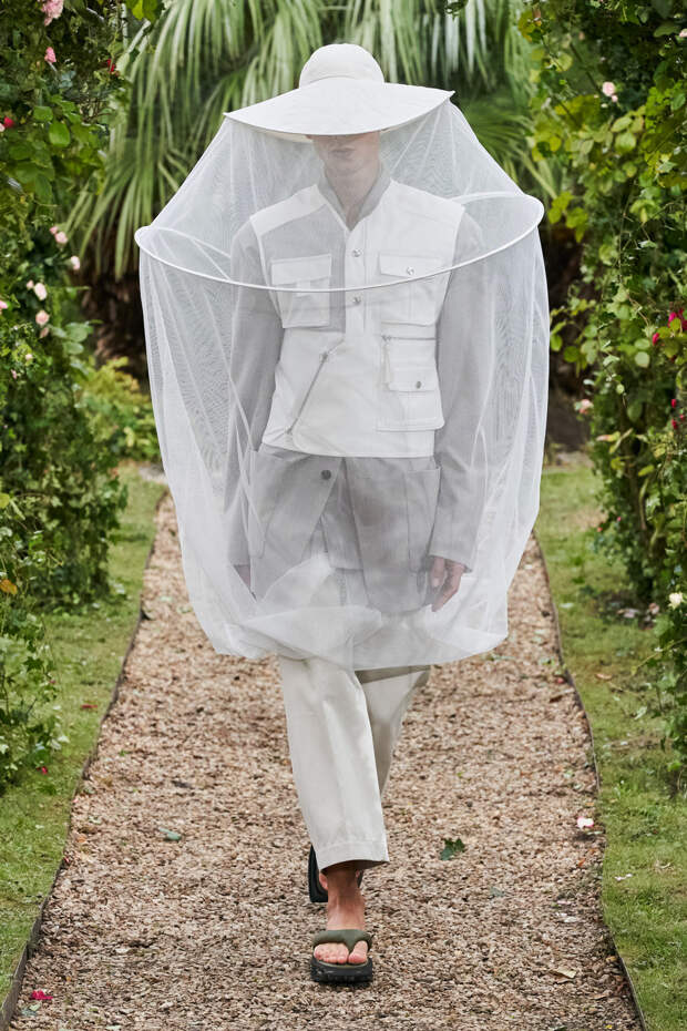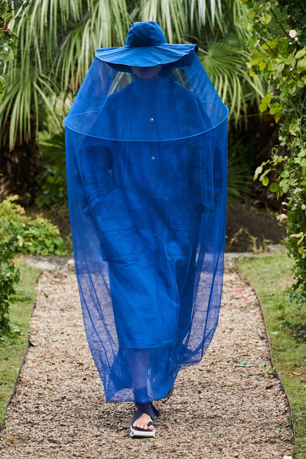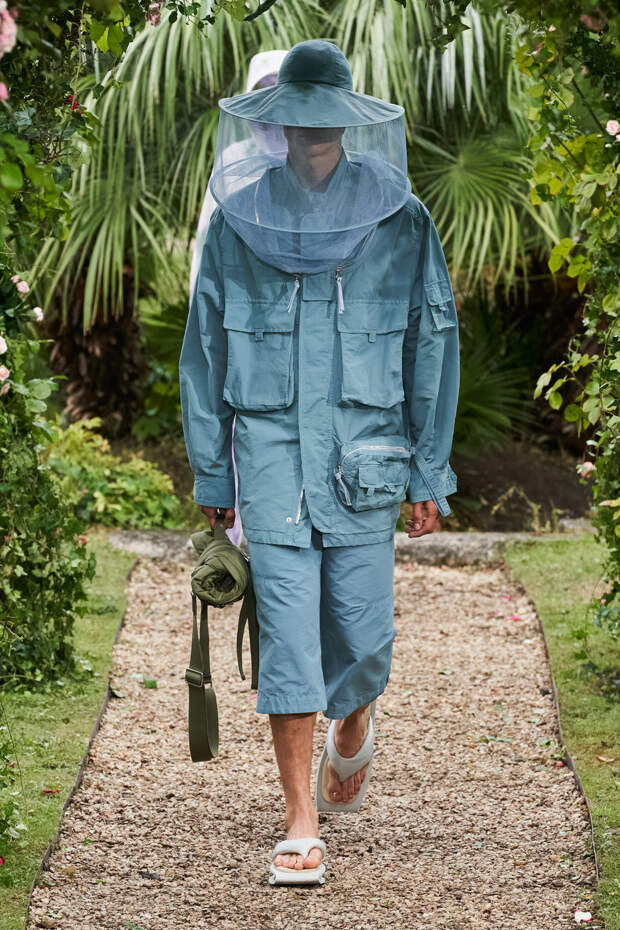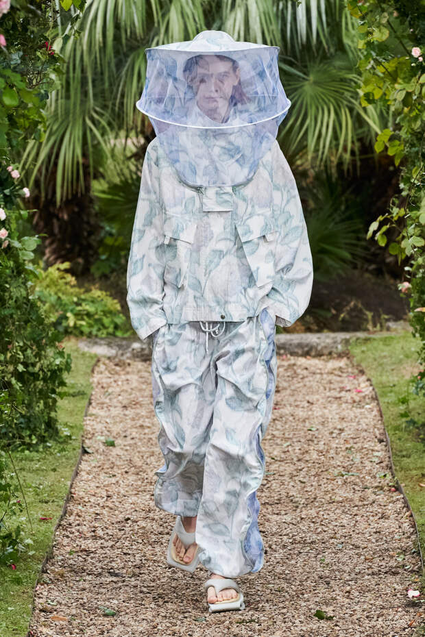 Результатом стало, возможно, самое неожиданное переосмысление социального дистанцирования в моде.Из названия "Bee a tiger" довольно несложно догадаться, что одним из источников вдохновения для Батишты стали пчелы. На выложенных в Instagram бренда видео с мудбордом коллекции можно увидеть пчелиные соты, иллюстрации с защитной одеждой и легендарный снимок Ирвина Пенна с этим насекомым на губах модели. "Пчелы и пчеловоды с их завораживающей одеждой и шляпами — это самое сильное эхо хрупкости и дистанции, которые так нужны нам сейчас", — сказал он после показа. Надо сказать, шляпы пчеловодов с защитными сетками — это пусть и не самая очевидная, но зато очень сильная и интуитивно понятная метафора социального дистанцирования, которое прочно вошло в наши жизни с появлением коронавируса. Как пчеловод завесой из сетки отделяет себя от пчел, которые, при всей их пользе, могут оказаться для него опасными, так и мы все отделяемся масками и расстоянием от любимых людей во избежание взаимных рисков. Кроме того, новые аксессуары Kenzo придутся по душе еще и интровертам, ведь позволят легко (и эффектно!) скрыться от окружающих, выходя из дома.