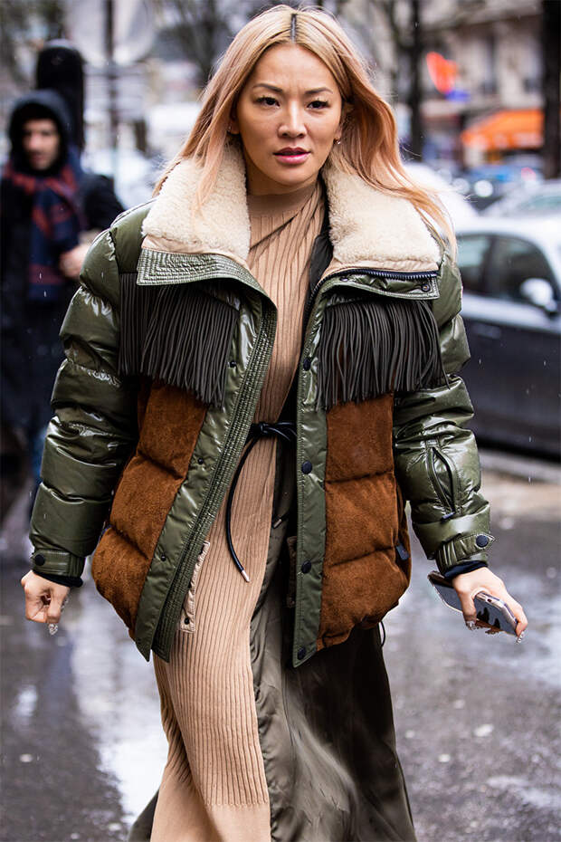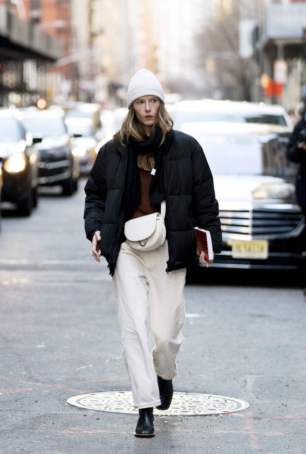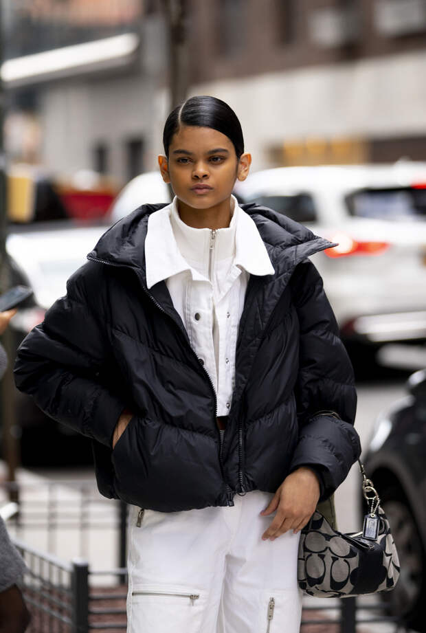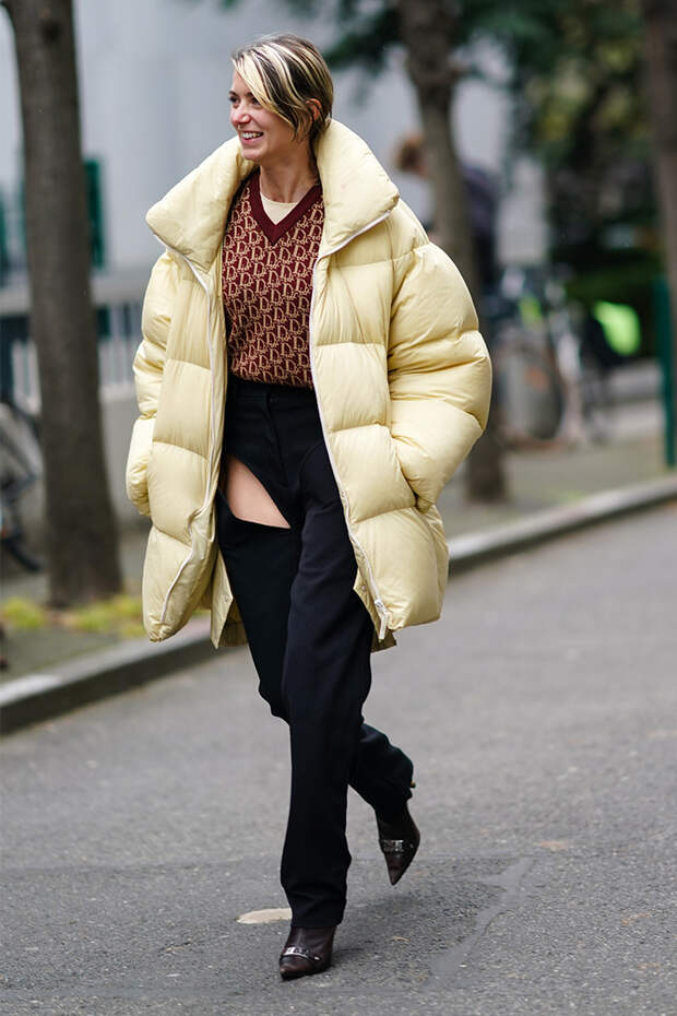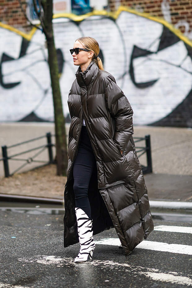 Именно такой контраст добавит образу нужной остроты и выделит вас из толпы. И, разумеется, не забывайте о пропорциях и их соотношении. В погоне за ультрамодной многослойностью постарайтесь не забыть о том, что образ не должен выглядеть грузным. Да и с оверсайзом лучше не перебарщивать — а противном случае слишком большой пуховик сделает вас визуально ниже и объемнее. Зато в части длины никаких ограничений нет — в моде как короткие, так и длинные варианты. Все эти рекомендации вы увидите своими глазами в подборке фото ниже — обращайтесь к ней за вдохновением каждый раз, выходя из дома.