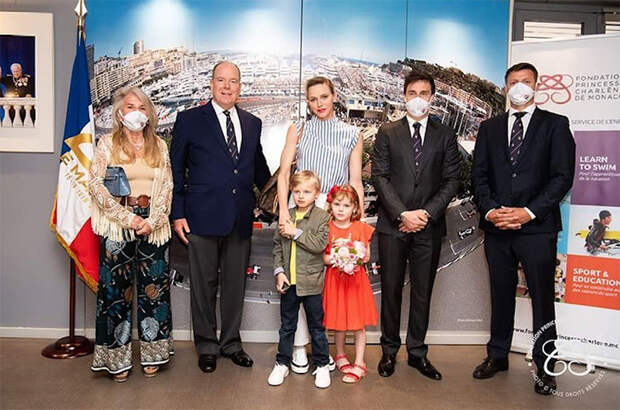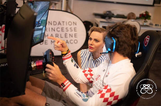 В эти выходные гонка «24 часа Ле-Мана» проходит в виртуальном формате с помощью симулятора rFactor2. На открытии кибергонок побывали князь Монако Альбер II и княгиня Шарлен с детьми - принцем Жаком и принцессой Габриэллой. Для выхода в свет Шарлен выбрала белые джинсы и полосатую рубашку без рукавов. Белые кеды и часы завершили лаконичный образ княжны.
