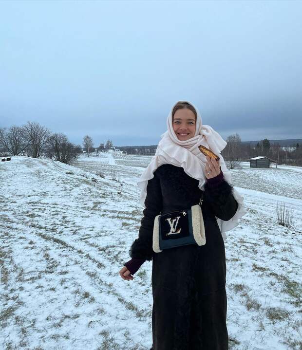 Остров в северной части Онежского озера с его удивительно атмосферными деревянными церквями считается объектом всемирного наследия ЮНЕСКО с 1990 года. Модель показала своим детям все красоты родной страны, как она всегда мечтала.Наталья делится хрониками семейной поездки. На этот раз она предстала в образе розовощекой красавицы из русских сказок. Звезда мировых подиумов выбрала теплое черное пальто из овчины, а вместо головного убора использовала кремовую шаль из кашемира - и все это бренда ее близкой подруги Ульяны Сергеенко. Финальным штрихом образа стала вместительная сумка Louis Vuitton со светлой меховой оторочкой.