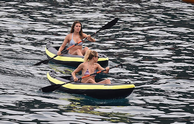Девушки проводят время время на яхте в компании друзей, в том числе лучшего друга Жуковой Дерека Бласберга. Сиенна попала в объектив папарацци в маленьком бикини Misoni, продемонстрировав идеальную фигуру.