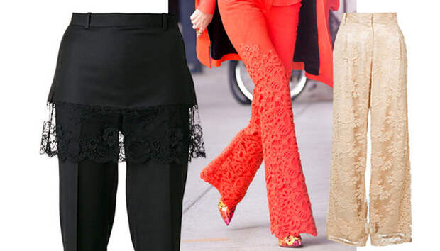 Вчера Джиджи Хадид взбодрила Нью-Йорк и ненадолго превратила его из Большого яблока в Заводной апельсин своим оранжевым тотал луком. Нам приглянулись брюки модели, расшитые тонким кружевом, и мы решили собрать для вас самые эффектные и женственные модели в духе Хадид. Оказалось, что у многих дизайнеров — Stella McCartney, Dolce & Gabbana, Alexander McQueen, Valentino и других — есть своя вариация на тему брюк с кружевом.