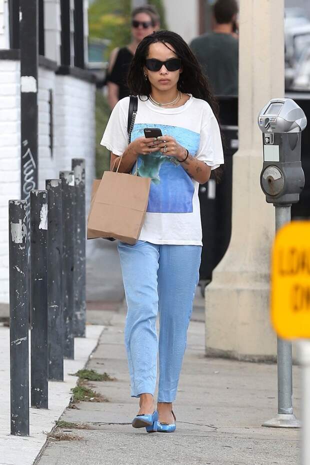 Впрочем, массивное украшение ничуть не повлияло на стиль нашей героини: звезда "Большой маленькой лжи" по-прежнему выходит из дома в свободных брюках, растянутой футболке с обложкой альбома Nevermind "Нирваны" и миксует этот расслабленный дуэт с небесно-голубыми туфлями принцессы. С нетерпением ждем свадебный образ Зои — он точно будет особенным!