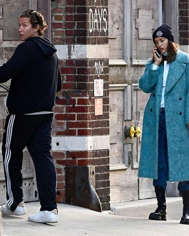 Несмотря на предписание соблюдать социальную дистанцию, Ирина и Вито держались вместе на улицах Ньй-Йорка, а потом пара и вовсе отправилась в апартаменты Шнабеля на Манхэттене. Ирина составила безупречный кэжуал образ. Белый топ и свободные джинсы она дополнила бирюзовой плюшевой шубой Max Mara и своими любимыми "армейскими" ботинками. Модель отказалась от макияжа, а в качестве аксессуаров выбрала самый актуальный на сегодня - защитную маску. Вито тоже надел маску, хотя и почти снял ее на подходе к дому.