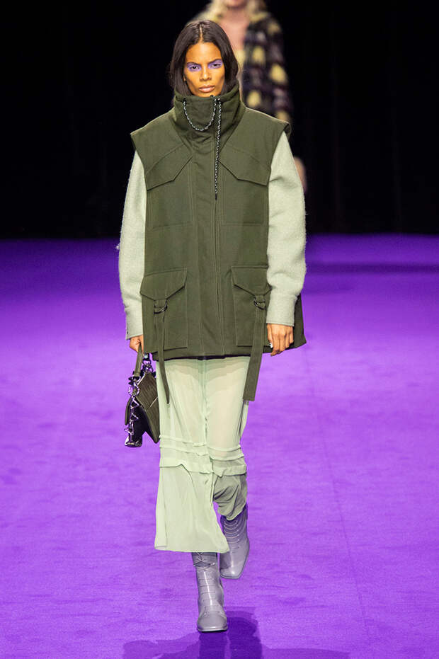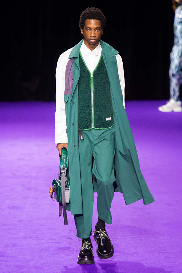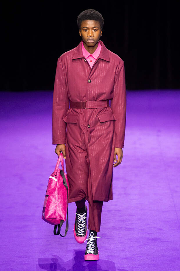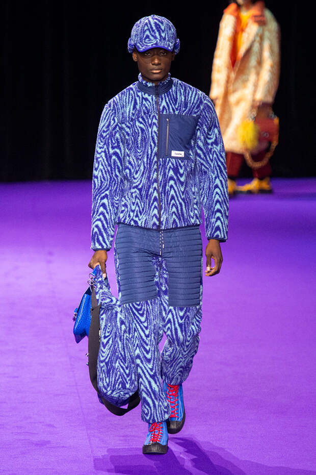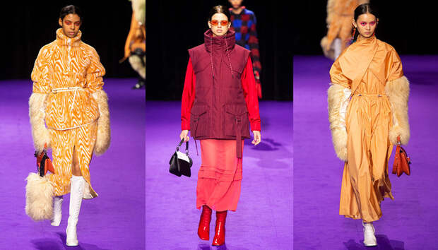 Не отстают от коллег по цеху и Умберто Леон с Кэролом Лимом: на осенне-зимнем шоу в Париже они представили не только яркие во всех смыслах наряды для мужчин, но и эффектные луки для женщин. Лейтмотивным цветом коллекции стала фуксия: в ней выполнены “рабочие” костюмы и летящие плащи, высокие сапоги на шнуровке и сумки из овечьего меха. Кстати о мехе: его в женской части коллекции особенно много: нежно-голубой, бирюзовый и насыщенно синий, он принимает разные формы и служит выразительным акцентом к любому наряду. Словом, прекрасный акцент для осенне-зимнего образа, который будет и греть, и радовать глаз.