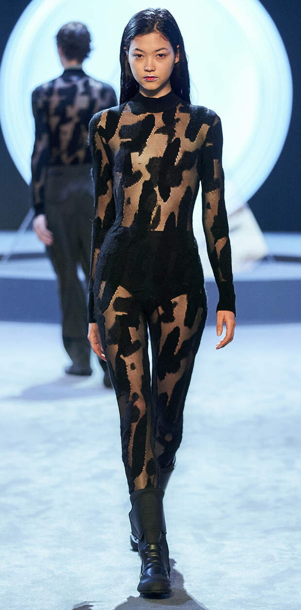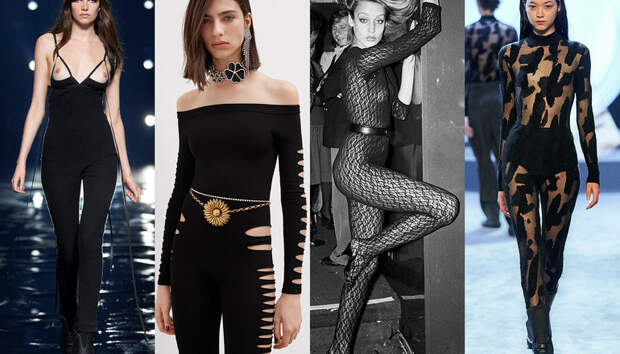 Полупрозрачные или с разрезами в стратегических местах, облегающие как вторая кожа, комбинезоны придуманы специально для тех, кто на пути принятия себя продвинулся очень далеко. Ну а если перевоплощаться в женщину-кошку вы пока не готовы, наденьте сверху контрастное пальто или объемный тренч – благо многослойность не сдает позиций в списке трендов. Бижутерию выбирайте крупную и максимально скульптурную, а вот обувь может быть любой – от женственных kitten heels до панковских ботинок на тракторной подошве или классических оксфордов.