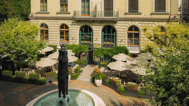 Выходите из старого города на набережную и двигайтесь в сторону знаменитого женевского фонтана. По правую руку прямо напротив английского сада – отель «Метрополь», единственный из пятизвездочных, которым владеет непосредственно город со времен Второй мировой. Тогда отель был отдан обществу Красного Креста, но в 70-х власти собрались было сносить старинное здание ради новой современной гостиницы. Горожанам идея не понравилась, и было решено провести референдум (их тут очень любят: чего стоит голосование за «официальное дерево Женевы», объявляющее наступление весны). За спасение «Метрополя» уже наверняка поблагодарили активных горожан знаменитые постояльцы, среди которых в разное время были София Лорен, Жан Дюжарден и многие российские звезды. Мы же рекомендуем отель не только за историю. С масштабными реставрациями в Женеве сложно, не у всех действительно красивых гостиниц есть возможность хотя бы просто поставить лифт. «Метрополю» же удалось полностью обновить номера с видом на фонтан – обязательно просите себе именно их. Позавтракать же можно на веранде, читая свежую прессу или наблюдая за вальяжно направляющимися в офис белыми воротничками.