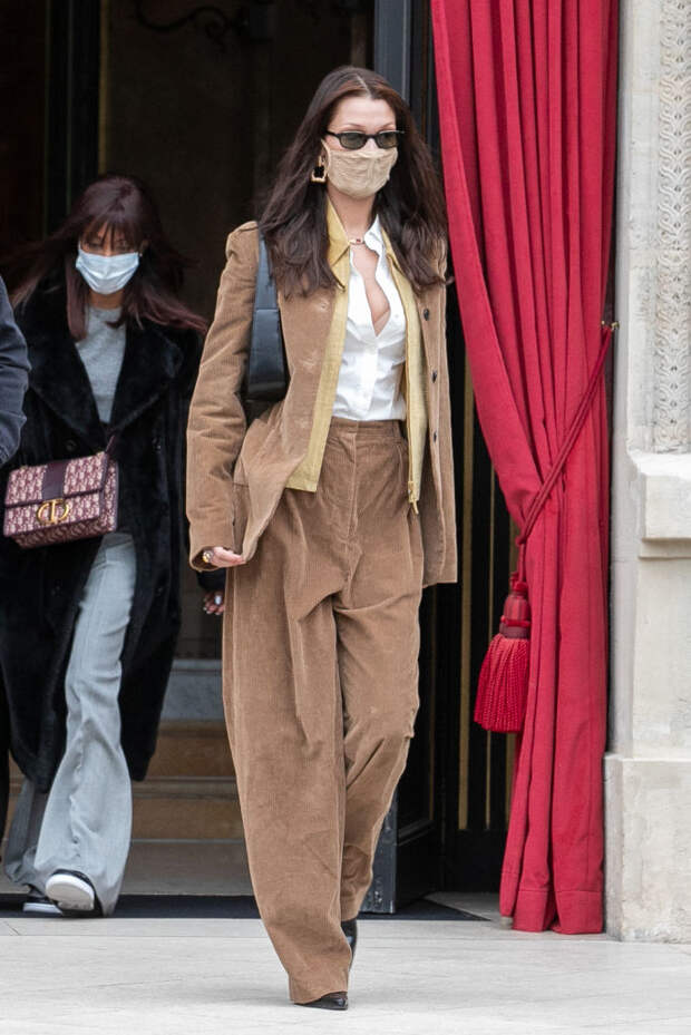 А пока мы находимся в ожидании ее новых работ, она радует нас своим безупречным стилем. На выходе из парижского отеля модель была замечена в самом модном брючном костюме сезона — комбо "мужского" жакета и широких брюк из бежевого вельвета The Row. Под него она надела молочный кардиган и белую рубашку — создав, таким образом, стильный многослойный комплект для ранней весны. Расслабленный оверсайз-костюм будет работать на вашу стильную репутацию, а дополнительный теплый слой в виде кардигана защитит от холода.