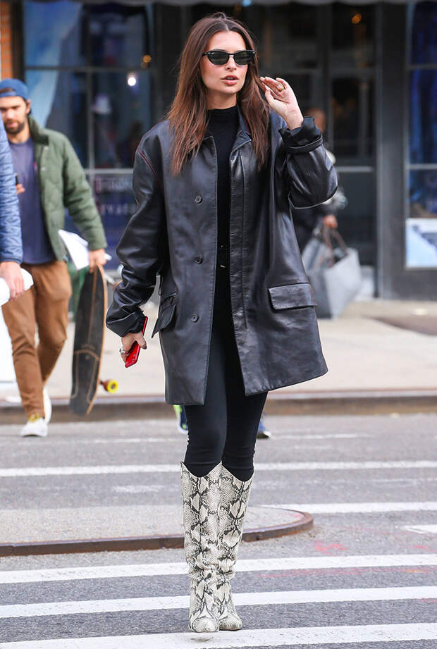 Не реже звезду можно увидеть в объемных кожаных куртках, высоких "змеиных" сапогах и "мужских" костюмах на голое тело.Мы собрали 11 лучших образов Эмили за последние месяцы, каждый из которых достоин повторения этой весной. Как минимум, отличная мотивация отправиться на спорт, чтобы заполучить такой же пресс и с гордостью носить короткие топы!