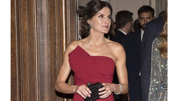 Летиция выбрала для выхода вишневое платье-бюстье с абсолютно открытым верхом. Наряд подчеркнула красивую зону декольте королевы и ее спортивные руки.Интересно, что ранее этим же днем она предстала перед публикой в одеянии совершенно противоположного стиля: испанская королева посетила важную конференцию в абсолютно закрытом брючном костюме сочного апельсинового оттенка. Два таких разных образа за сутки, и оба - такие удачные! Впрочем, как и всегда у Летиции.
