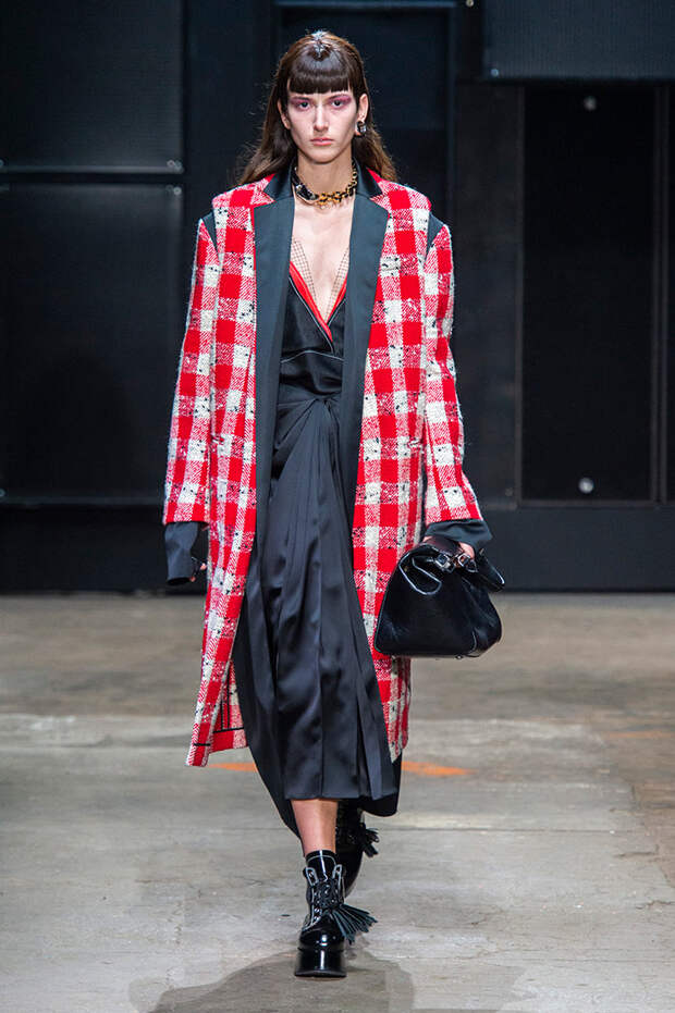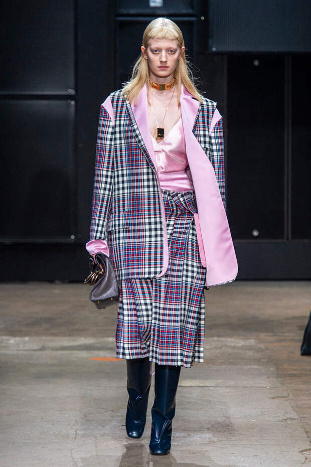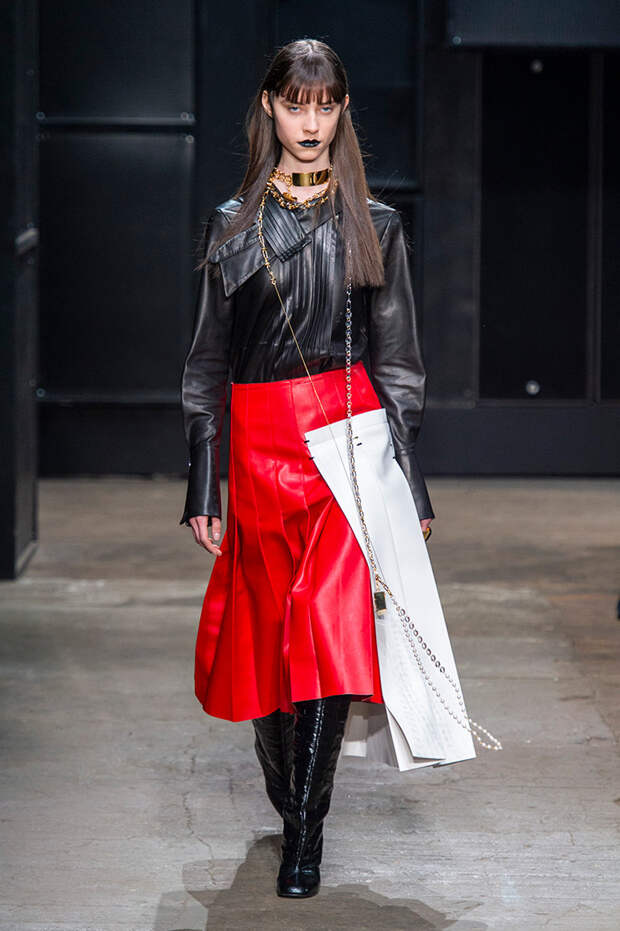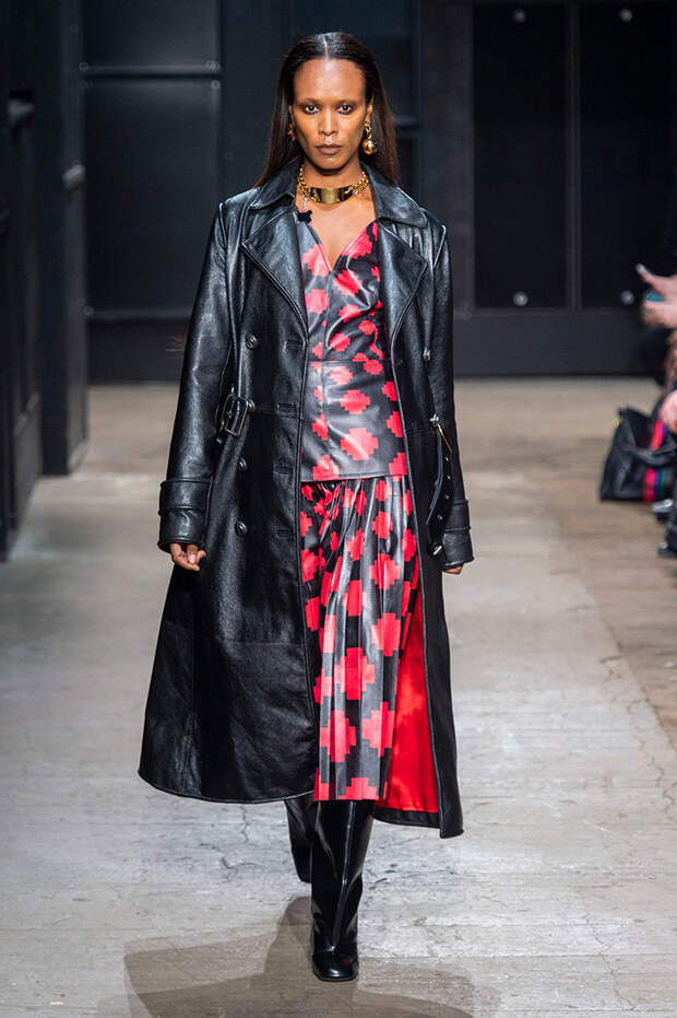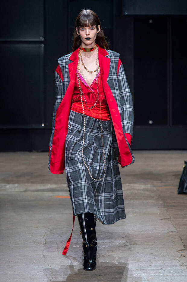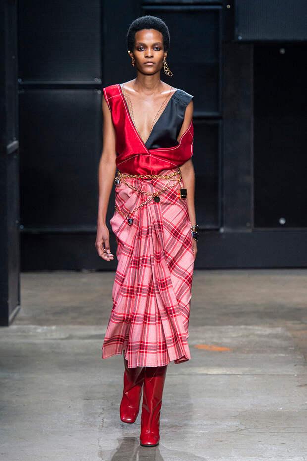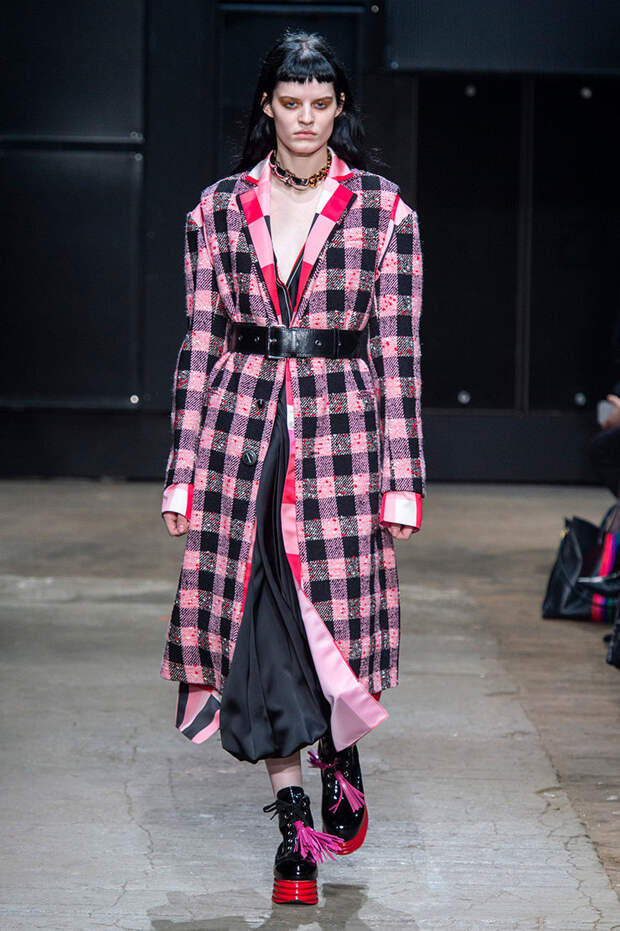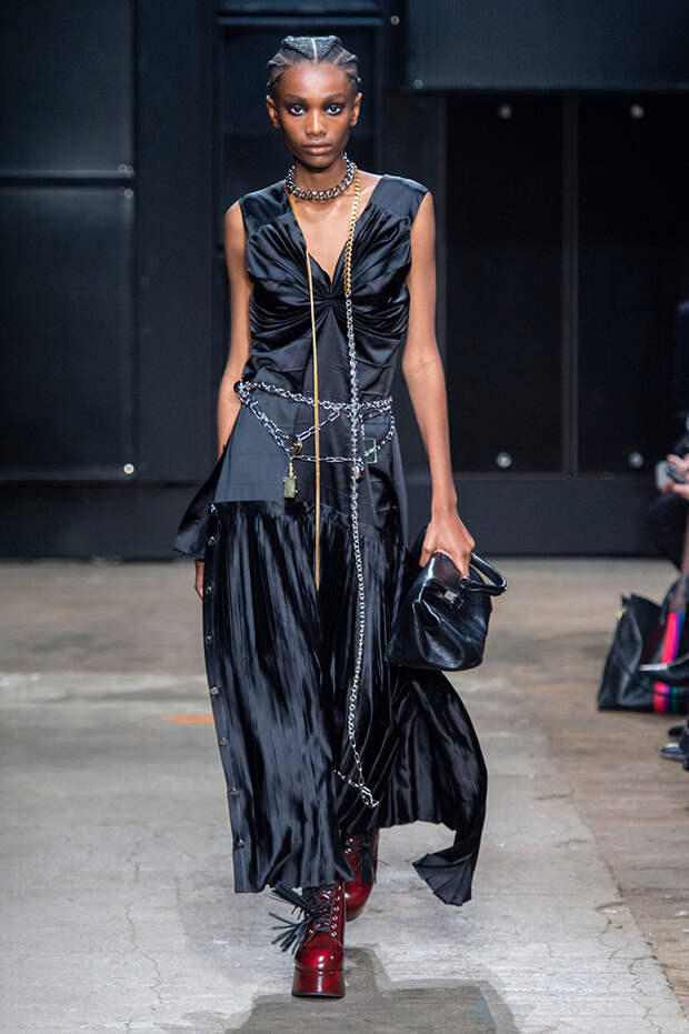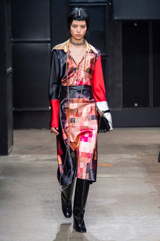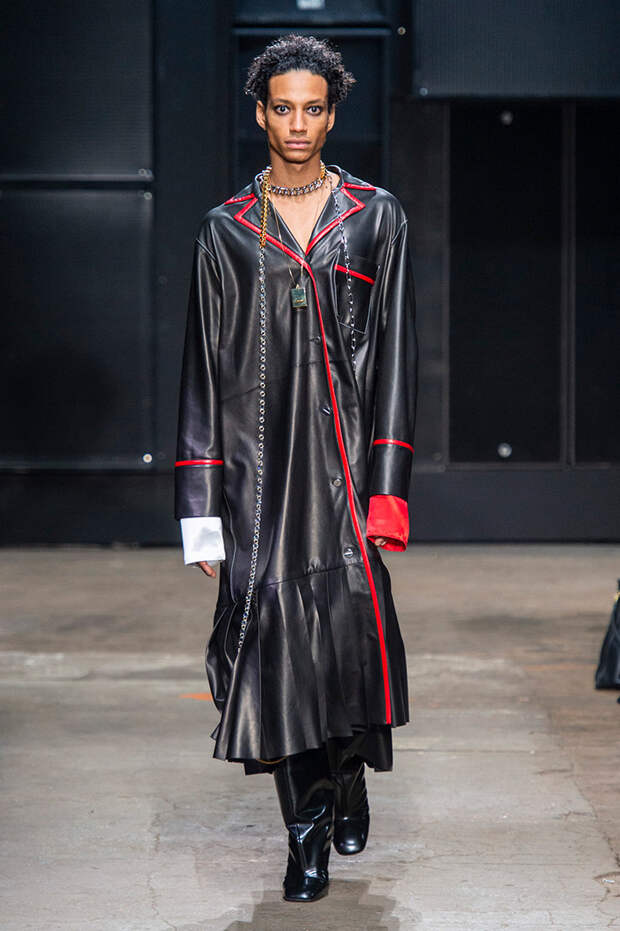 Мы же ограничимся основными тэгами: эротика, гормоны, борьба за сексуальную свободу как еретичество, противостояние рационального и чувственного, «карта точек удовольствия».Да, это еще одна коллекция, исследующая человеческую — в первую очередь женскую — сексуальность. В некотором роде более предсказуемая, чем у Симон Роша, в Лондоне работавшей с той же темой, и, тем более, чем у Кристофера Кейна. Риссо использовал и БДСМ-отсылки, и будуарную эстетику — все визуальные элементы, которые традиционно достаются наружу, когда нужно показать секс. Но банальной и скучной ее не назовешь никак. Здесь нет вызывающе глубоких декольте, "неожиданных", а на самом деле очевидных разрезов — это все было бы совсем не в духе странного, всегда на своей волне дома Marni.