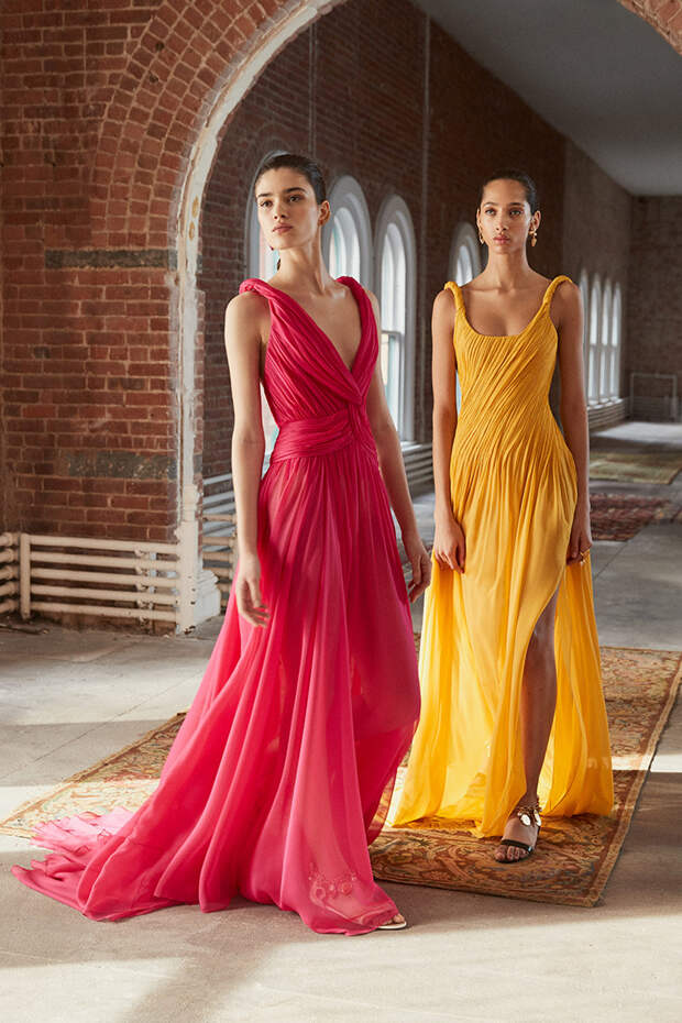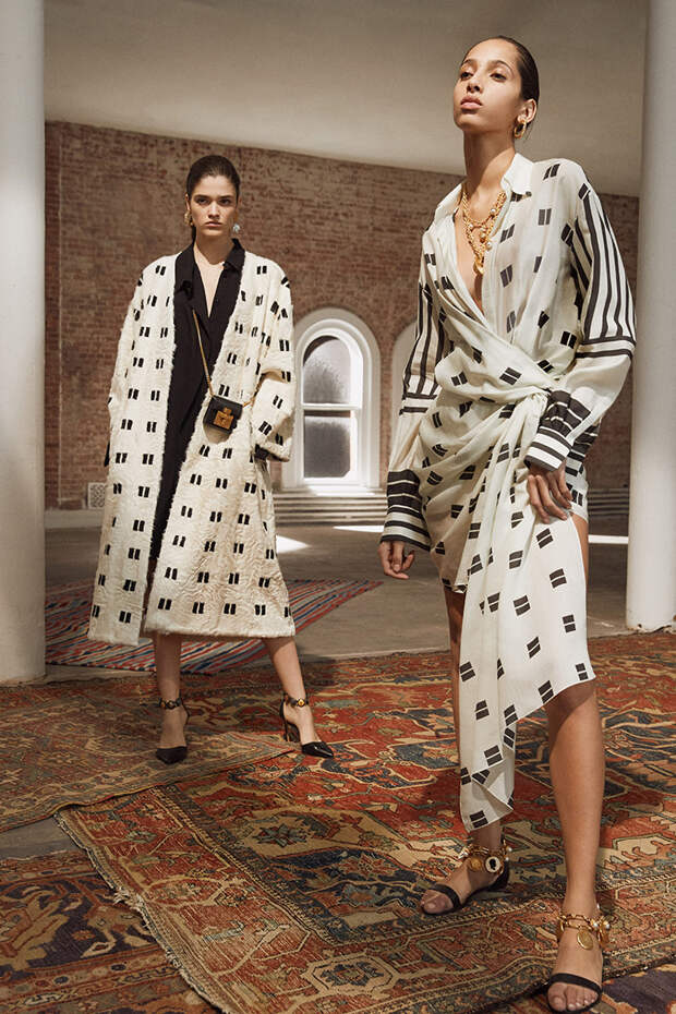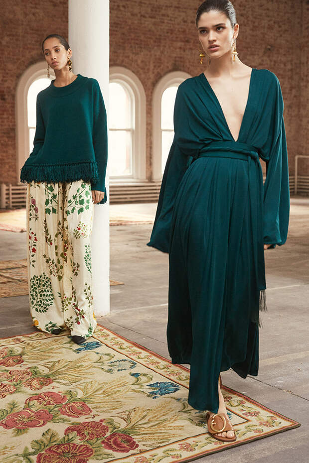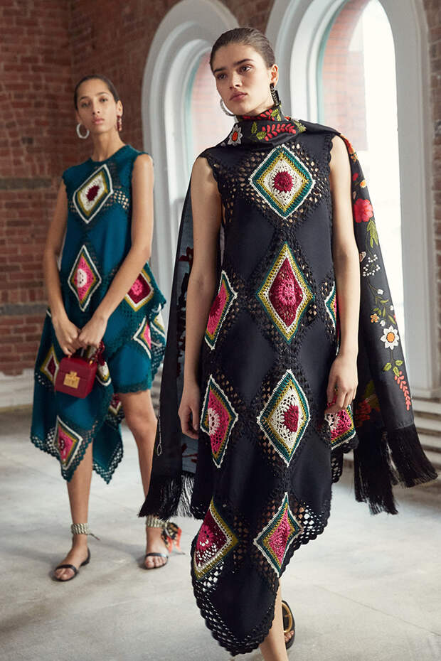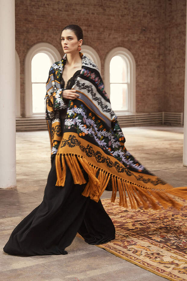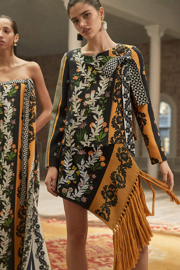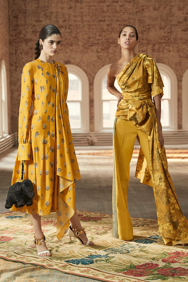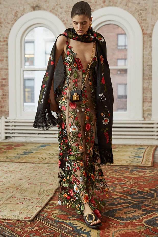 После весенне-летнего показа Oscar de la Renta на нью-йоркской Неделе моды дизайнеры Лора Ким и Фернандо Гарсиа получили массу положительных отзывов как от критиков, так и от поклонников марки. Именно поэтому коллекция Pre-Fall 2019 выполнена в том же духе, что и основная: здесь и этнические мотивы, и летящие ткани, и индийская стилистика с ее "богатыми" фактурами, и шарфовые принты.