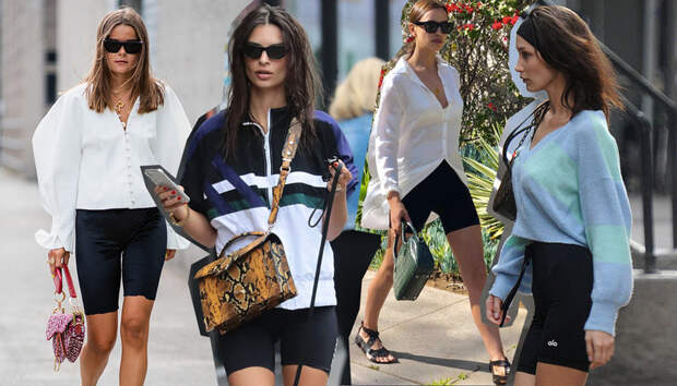 Не наигрались. Сегодня в велосипедках не зазорно не только выбегать за обезжиренным йогуртом в ближайший супермаркет, но и выходить в свет и блистать на красных дорожках. Ирина Шейк, сестры Хадид и Кендалл Дженнер носят шорты в облипку с каблуками, приталенными жакетами и миниатюрными сумками, лихо сопоставив их по уместности с классическими брюками и юбками-карандашами. И если уж мы решимся провести лето в подобной паре, то рекомендуем ориентироваться на опытных фэшиониста.