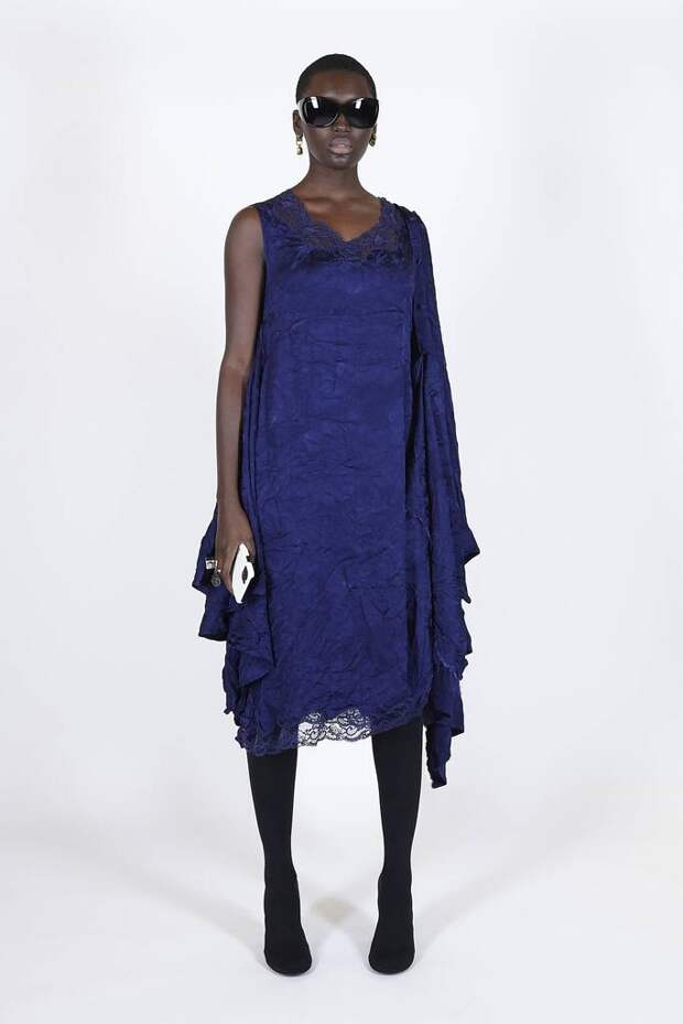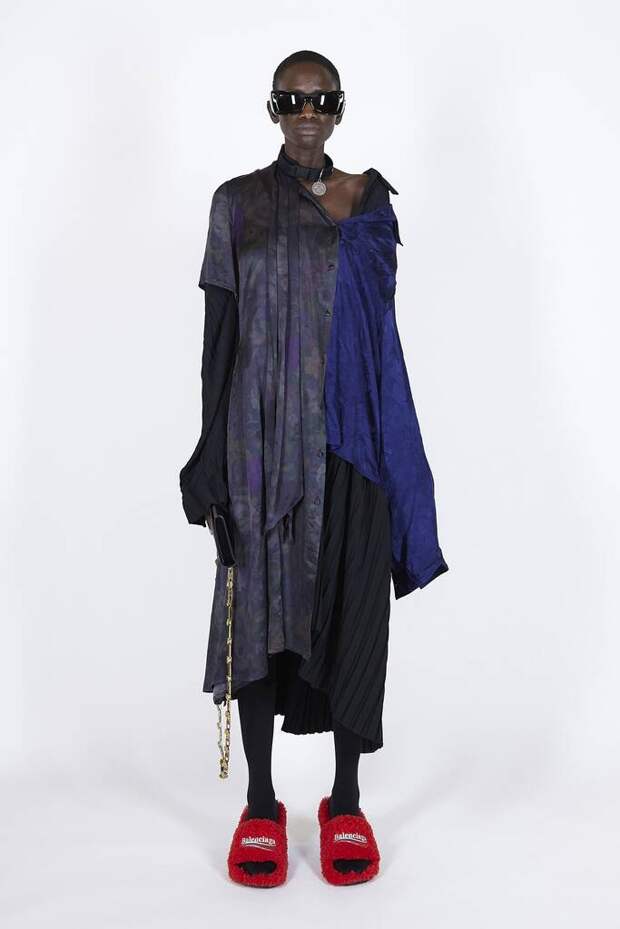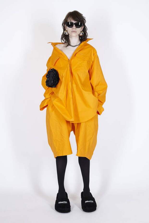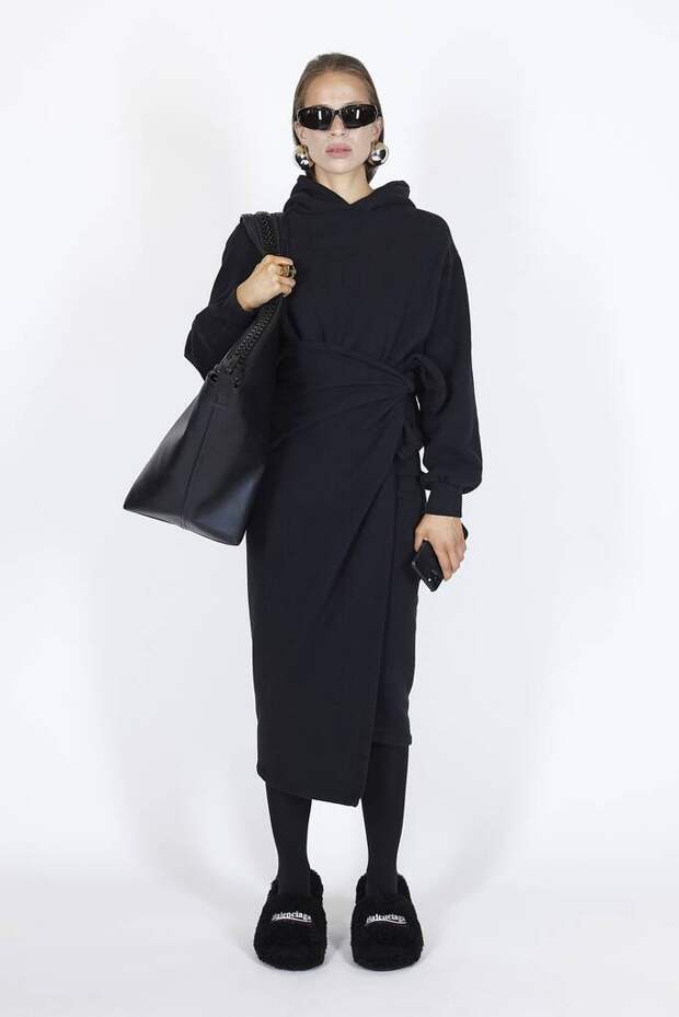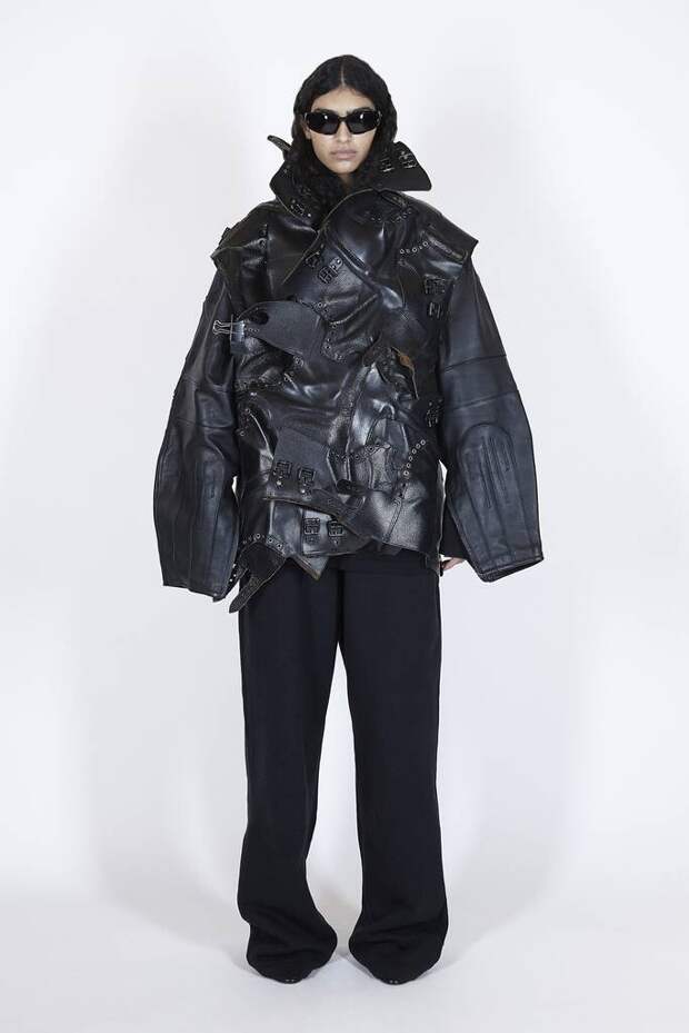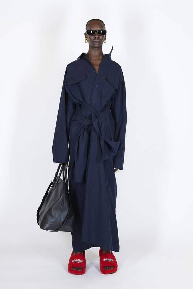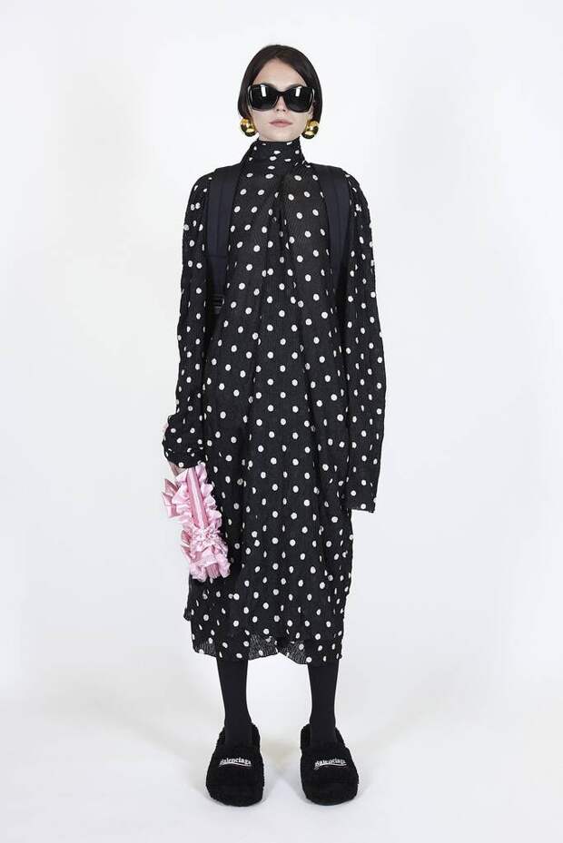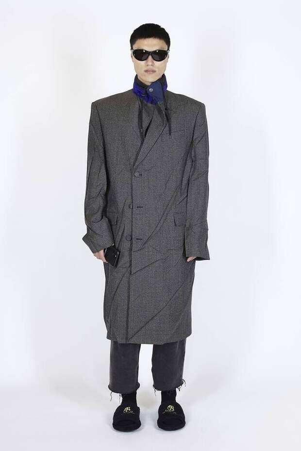 В коллекцию вошли пальто, навеянные банными халатами, туфли в форме мягких домашних тапочек и даже клатчи, имитирующие упаковки стирального порошка! Так буквально бытовую тему не воспроизводил еще никто — даже известный шутник от моды Джереми Скотт. Впрочем, зная работу сотрудников французского Дома, уверены, что даже такие обыденные вещи будут выполнены на кутюрном уровне. Также в лукбуке появились комбинации для современной Скарлетт О'Хары, будто сшитые из занавесок, многочисленные вещи в технике пэтчворк (например, куртка из сотен кусочков кожи и жакет из обрезков ткани) и уже знаковые для Гвасалии пальто и пиджаки с огромными гипертрофированными плечами и аллюзии на тему винтажных спортивных костюмов. Значительная часть лукбука в очередной раз посвящена теме пост-советских 90-х и "эстетике спальных районов" — любимой стилистике дизайнера. В одной коллекции он смог как повторить свои "коронные номера", так и показать нечто новое и непривычное. Это ли не успех?