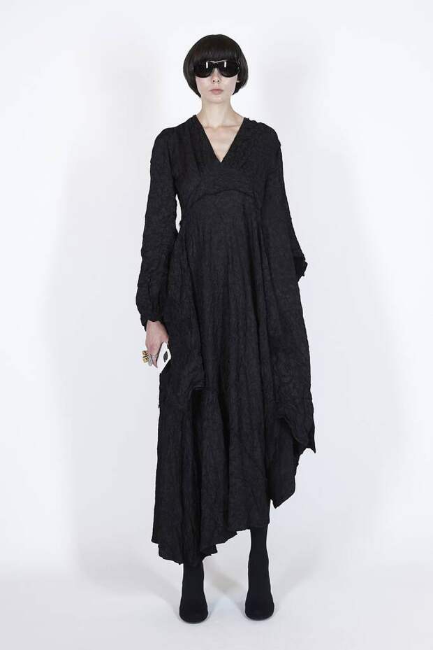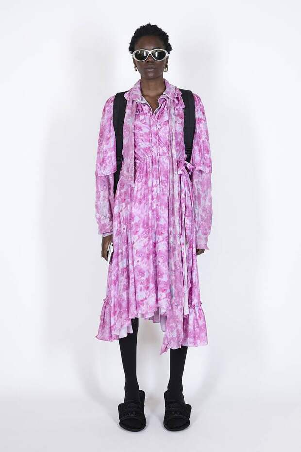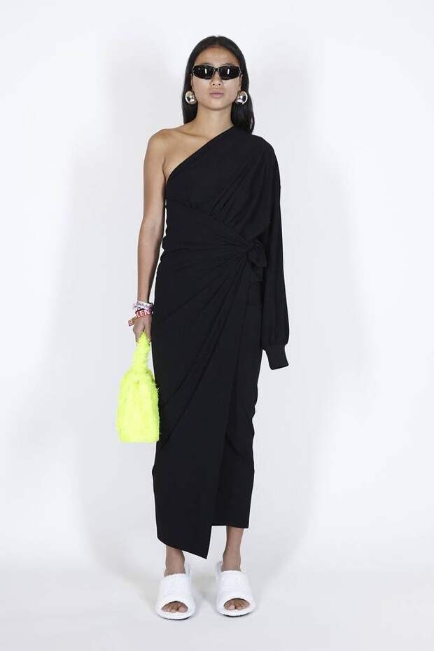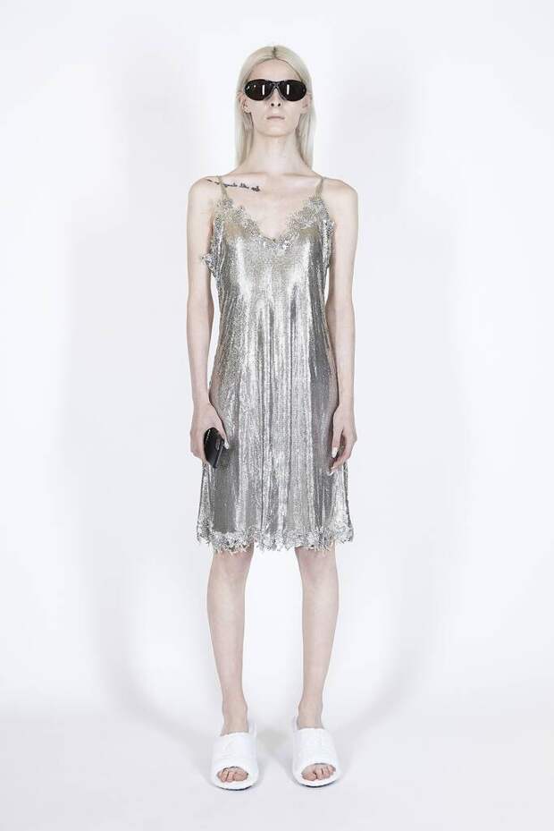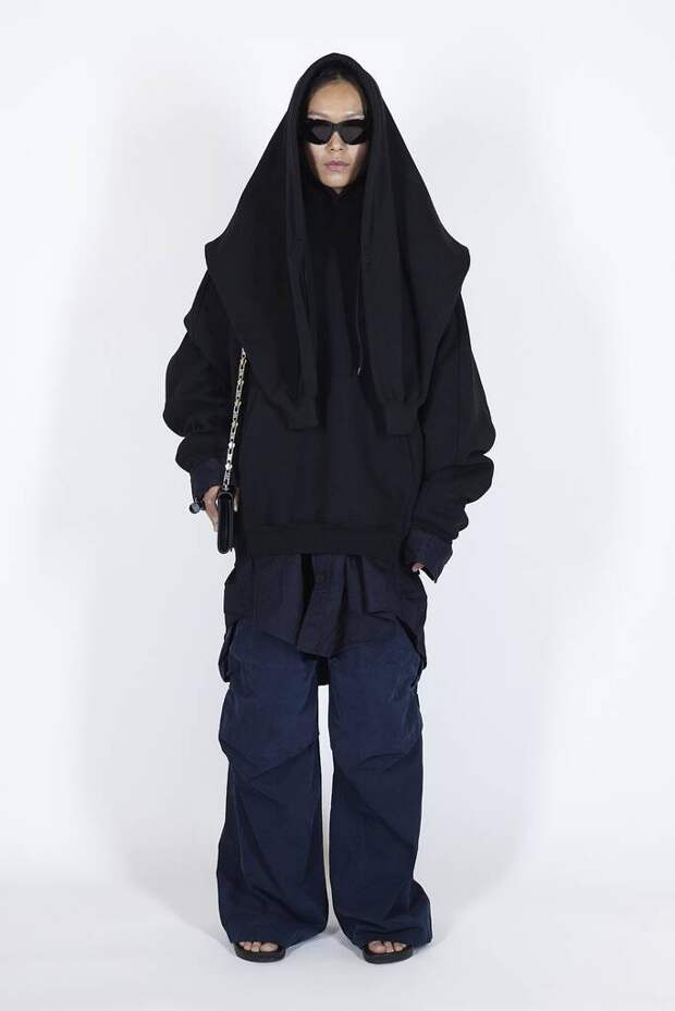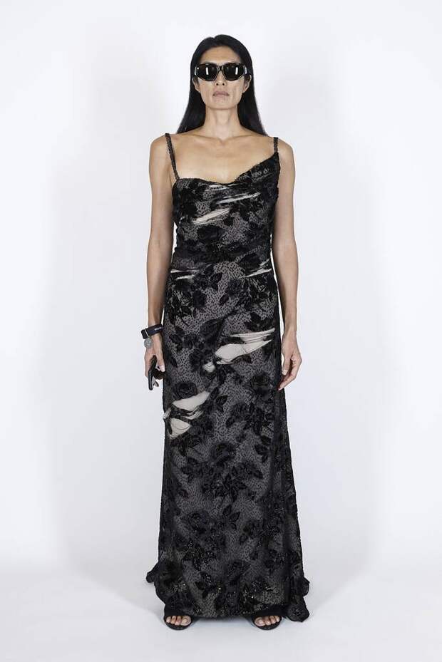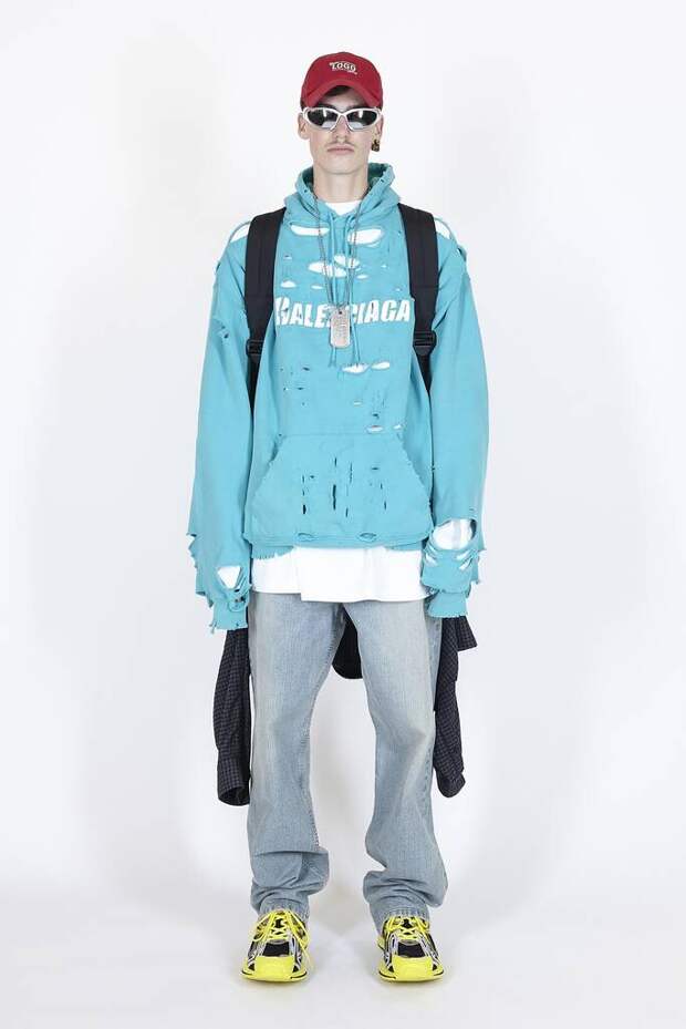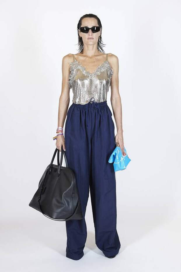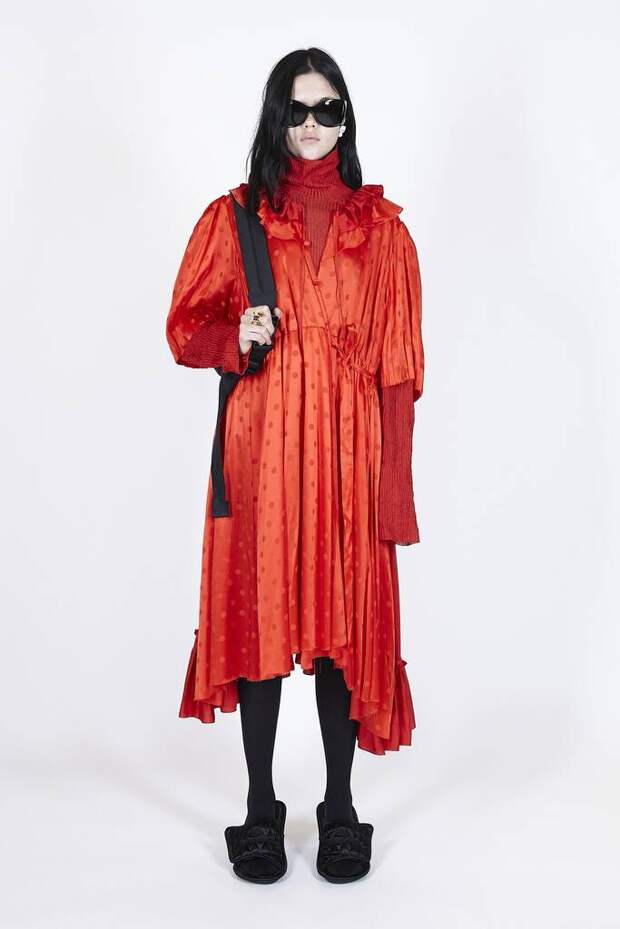 В коллекцию вошли пальто, навеянные банными халатами, туфли в форме мягких домашних тапочек и даже клатчи, имитирующие упаковки стирального порошка! Так буквально бытовую тему не воспроизводил еще никто — даже известный шутник от моды Джереми Скотт. Впрочем, зная работу сотрудников французского Дома, уверены, что даже такие обыденные вещи будут выполнены на кутюрном уровне. Также в лукбуке появились комбинации для современной Скарлетт О'Хары, будто сшитые из занавесок, многочисленные вещи в технике пэтчворк (например, куртка из сотен кусочков кожи и жакет из обрезков ткани) и уже знаковые для Гвасалии пальто и пиджаки с огромными гипертрофированными плечами и аллюзии на тему винтажных спортивных костюмов. Значительная часть лукбука в очередной раз посвящена теме пост-советских 90-х и "эстетике спальных районов" — любимой стилистике дизайнера. В одной коллекции он смог как повторить свои "коронные номера", так и показать нечто новое и непривычное. Это ли не успех?
