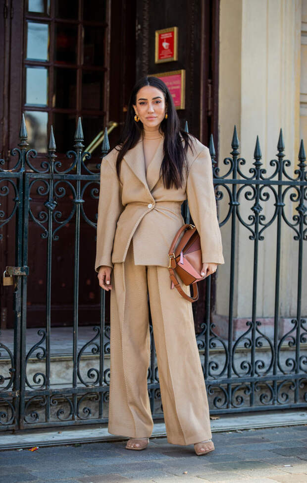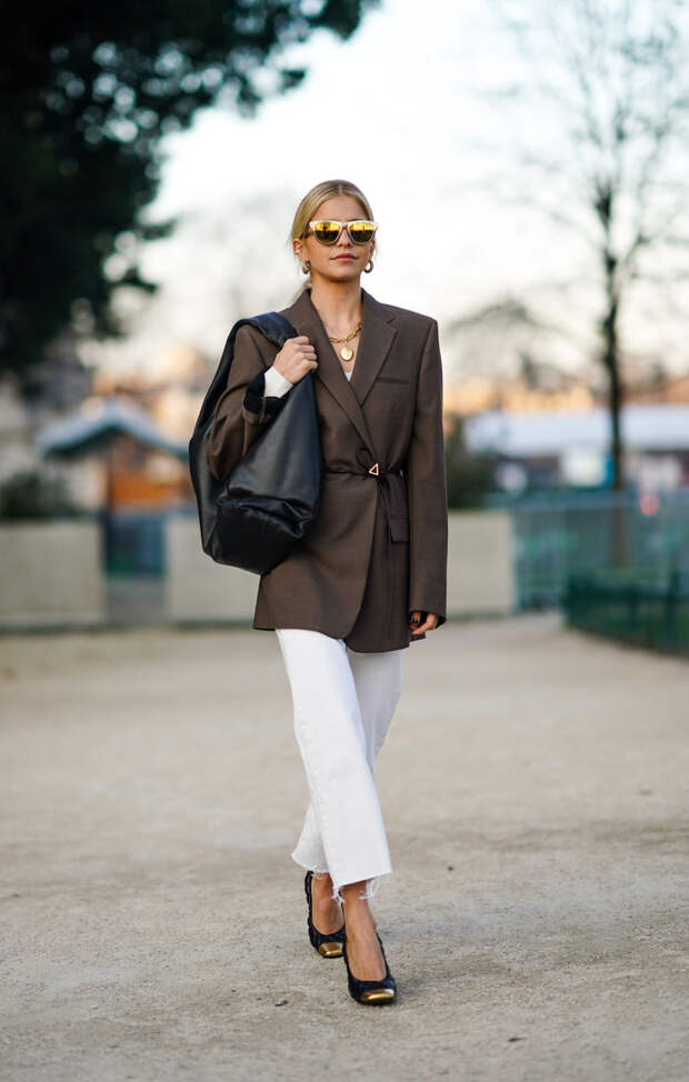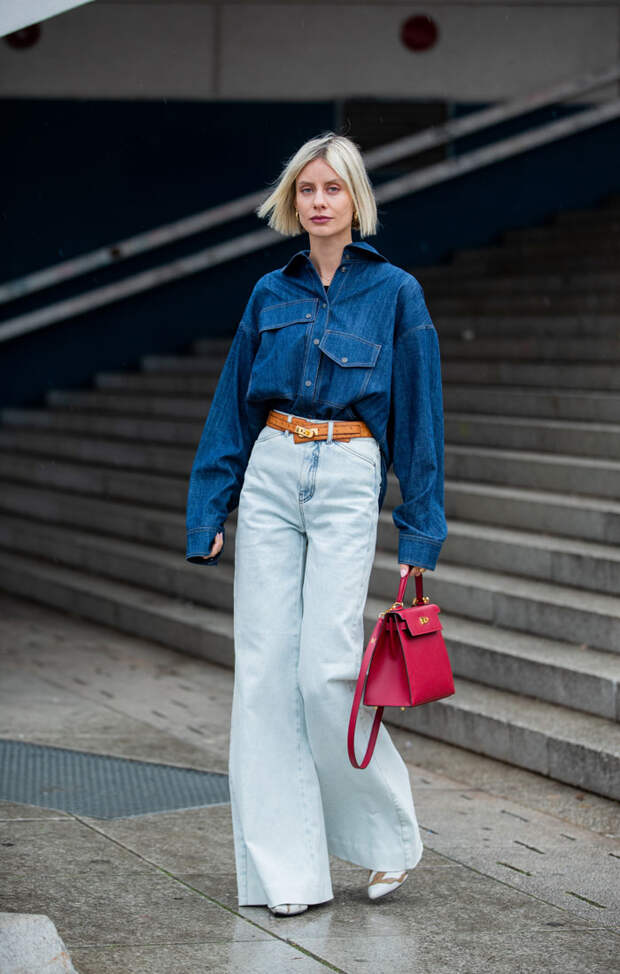 Комбинируя оверсайз-рубашки и жакеты с широкими брюками, добавьте образу фактуры и линий с помощью ремня, повязанного на талии. Еще один способ выделить фигуру - заправить объемный верх в брюки. Используйте трендовый прием фэшиониста и заправляйте в широкие джинсы даже блейзеры и вязаные кардиганы. Так получится образ в форме песочных часов - объемные плечи и свободный низ с подчеркнутой тонкой талией.