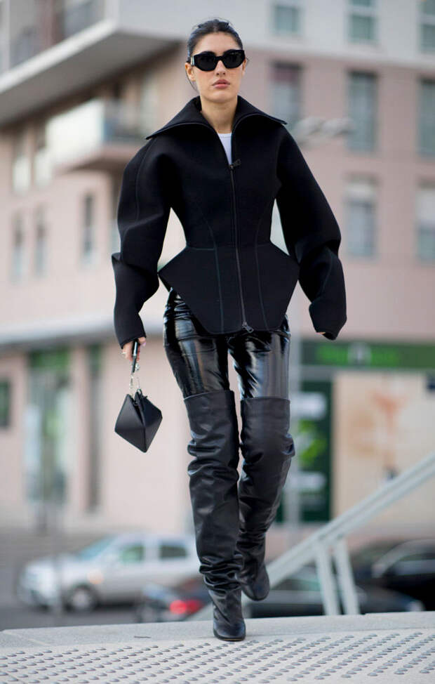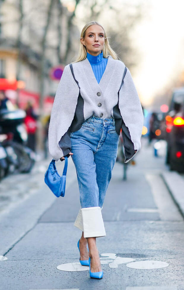Чтобы добавить актуальности в лук с зауженными джинсами или брюками, нужно уравновесить их объемным верхом.