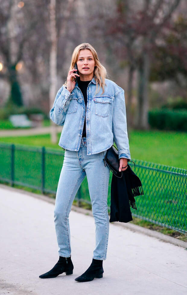 Носите скинни с утепленными оверсайз-рубашками и джинсовками, жакетами "с мужского плеча", футболки на пару размеров больше или же мужскими рубашками (как это делает Хейли Бибер).