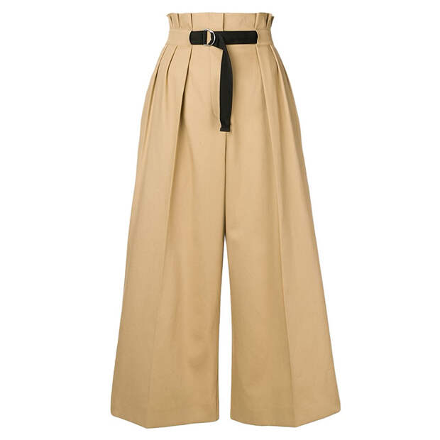 Брюки-кюлоты незаменимы летом: широкие и укороченные, они оставляют открытыми щиколотки и большую часть голеней, исключая эффект прения.