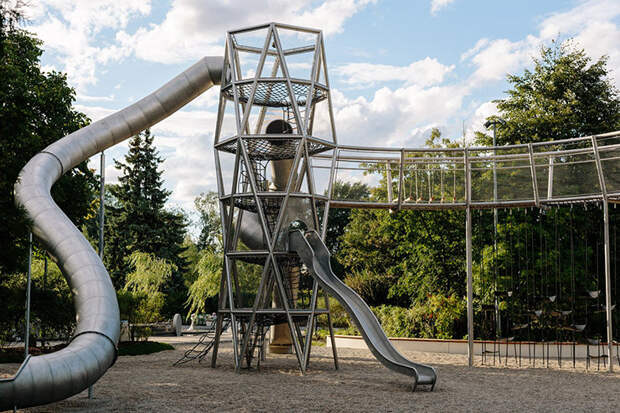 Музей современного искусства тоже празднует 90-летний юбилей парка Горького. "Салют" — самая большая игровая площадка в России. История началась еще в 1930-х: тогда на территории рядом с Пионерским прудом и детским центром «Зеленая школа» располагался детский городок с яслями. Испытать "Мегакачели", акваплощадку «Водная станция», "Мобильный конструктор", "Калейдоскоп" и другие активности во всех девяти секциях могут дети и взрослые. Площадка предназначена в том числе и для гостей с различными формами инвалидности, а ряд качелей доступен для посетителей, передвигающихся на инвалидных колясках.