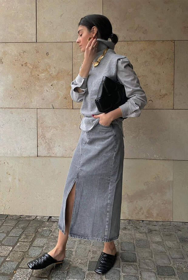 Дополняйте лук объемным блейзером и акцентным поясом – образ к любому случаю готов. Если вам по душе кэжуал, не спешите расстраиваться – в таком случае всегда есть деним. Джинсовая юбка А-силуэта от Balenciaga сможет вписаться как в дерзкий образ в стиле гранж с «армейскими» ботинками, так и в романтичный – с шелковой блузкой и ажурной сумкой. Естественно, не обойтись и без классики – рекомендуем присмотреться к базовым (но не менее стильным!) моделям от Jil Sander и MSGM. Носите их в офис в дуэте с привычной белой рубашкой или на завтрак выходного дня – с казаками и косухой. Выбрать «ту самую» юбку А-силуэта, как оказалось, не так-то просто.