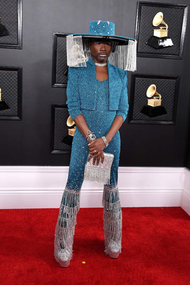 Самым ярким гостем мероприятия оказался неподражаемый Билли Портер. Он буквально сиял на красной дорожке в небесно-голубом костюме со шляпой и сапогах на высокой платформе.