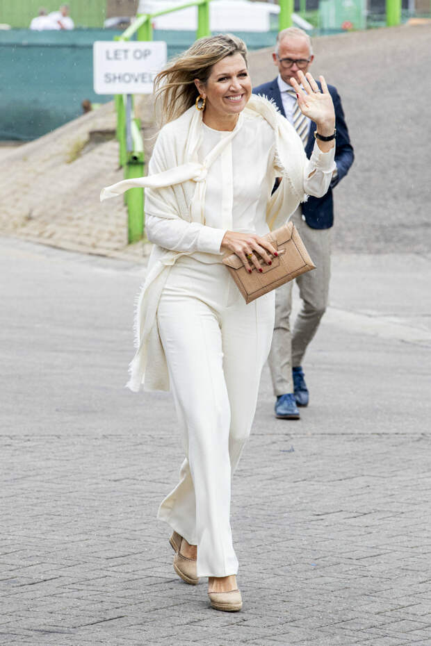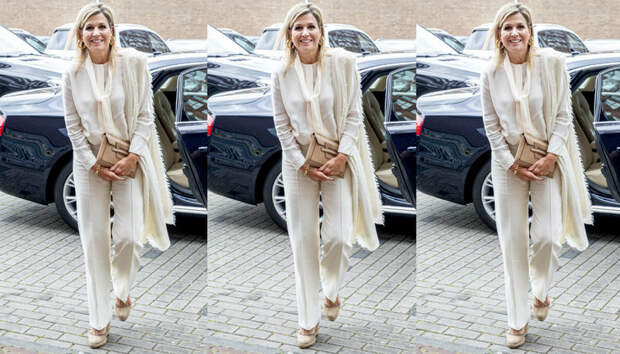Супруга короля Виллема-Александра составила безупречный деловой образ в оттенках белого цвета.