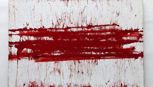 Артем несколько раз ударяет дубинкой по холсту, в результате чего на нем остаются пятна, брызги и разводы. Первая работа в этой технике была сделана год назад и изображала российский триколор. "Беларусь" была выставлена на аукцион с начальной ценой в один рубль. Ранее сообщалось, что картина была приобретена за 2,5 миллиона рублей, но позже аукцион в Twitter художника был продлен и конечная отметка достигла 3 миллионов. Покупатель пожелал сохранить анонимность.На белом холсте изображены кроваво-красные полосы по центру - это отсылка к бело-красному флагу, который был государственным в Беларуси до 1995 года. Сейчас этот флаг является неофициальным символом белорусской оппозиции. Работа Артема Лоскутова посвящена акциям протеста в Беларуси, связанным с недавними президентскими выборами в стране. Полиция неоднократно применяла силу к протестующим, несогласным с результатами голосования.