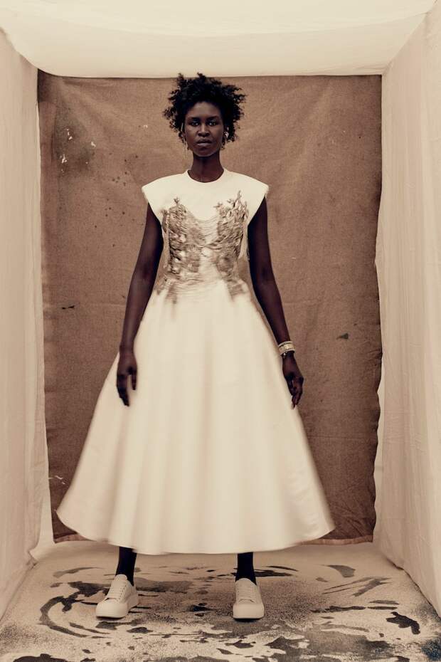 «Думаю, сейчас настало время исцеления, время вдохнуть новую жизнь, изучить эхо из прошлой жизни, чтобы обогатить наше будущее», — сказала Сара Бертон о новой коллекции Alexander McQueen. И поэтому обратилась к двум вещам, в целительных свойствах которых не сомневается решительно никто: цветам и воде.