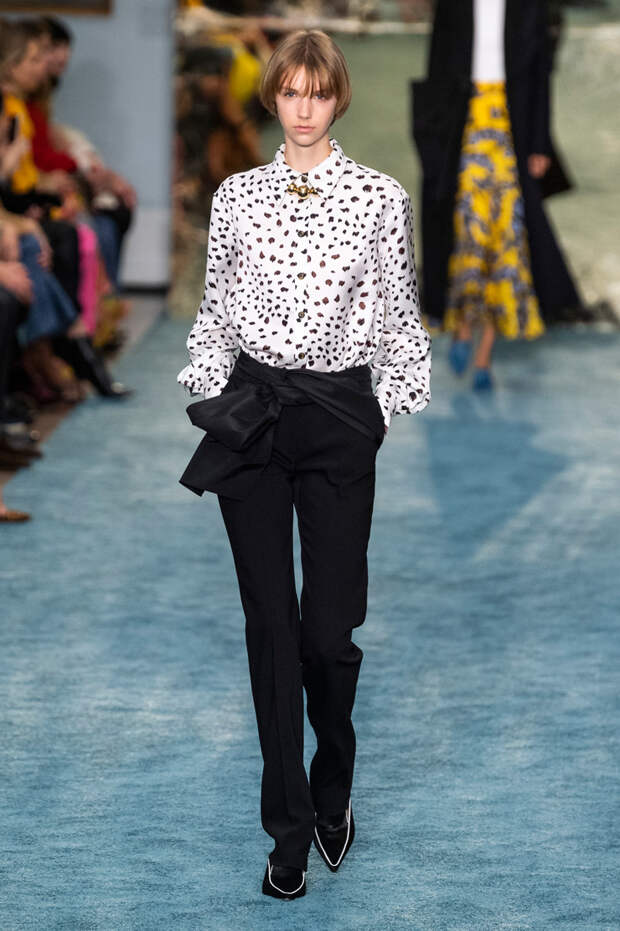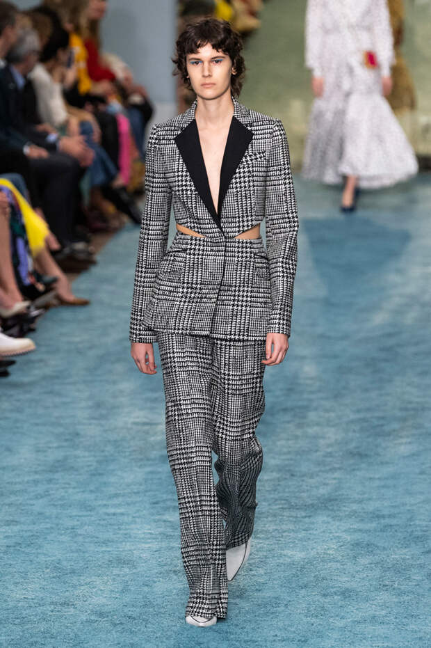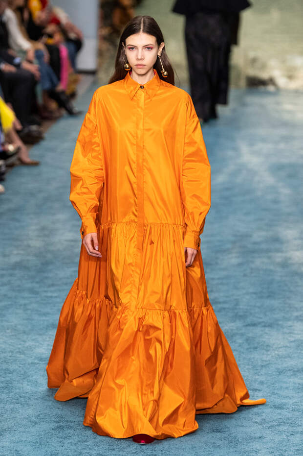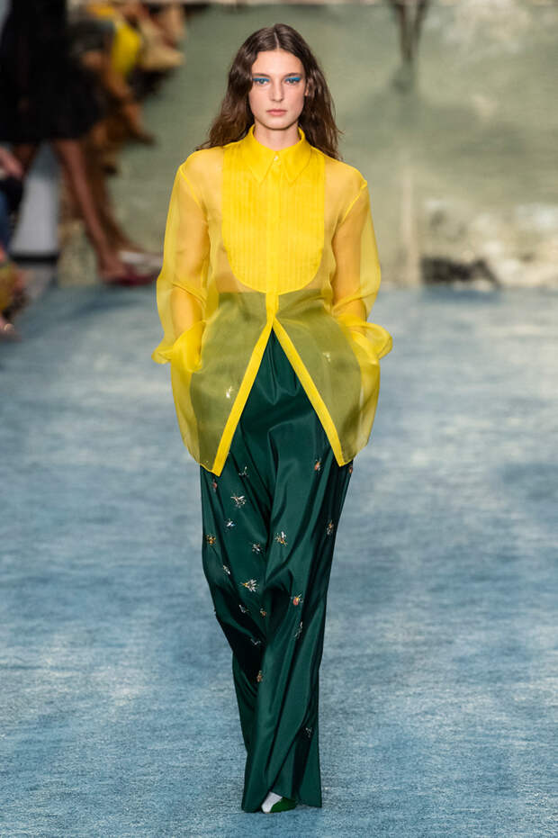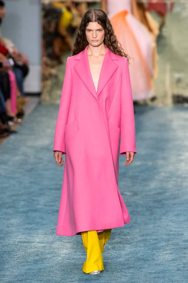 Усложнять крой при таком буйстве красок было бы неразумно, так что все вещи были просты, насколько возможно. Простота коллекции пошла только на пользу — купить хочется едва ли не все. Немало комплиментов в любых обстоятельствах точно соберут и яркие пальто, и дневные атласные платья с оборками на рукавах, и брючные костюмы-двойки с неожиданными вырезами на талии.