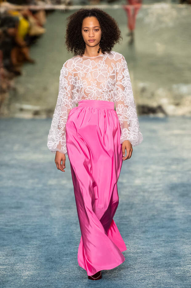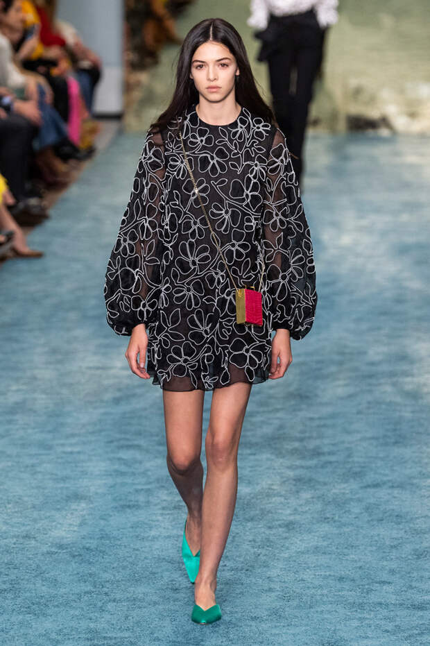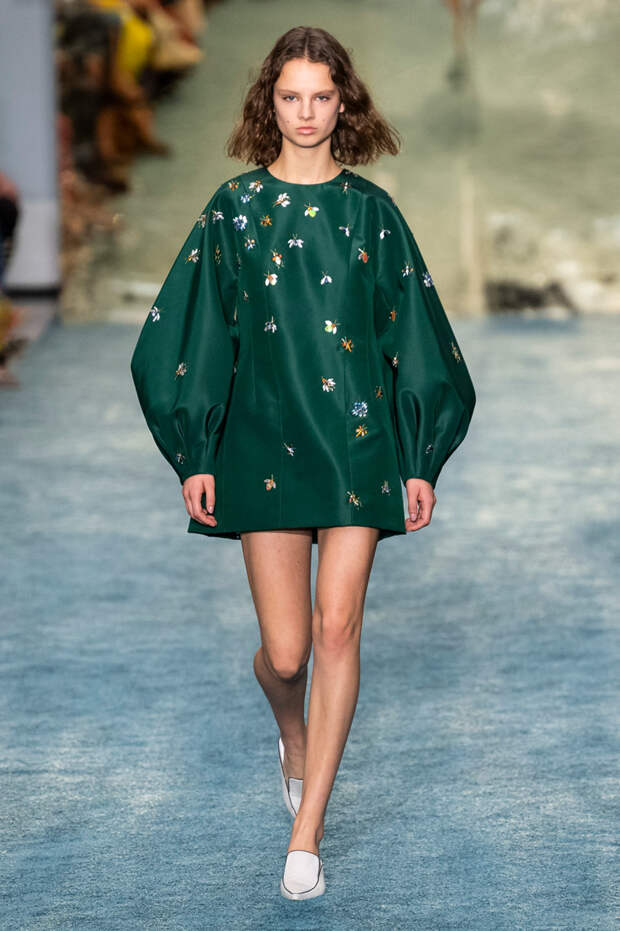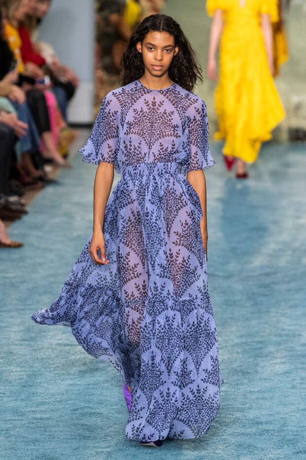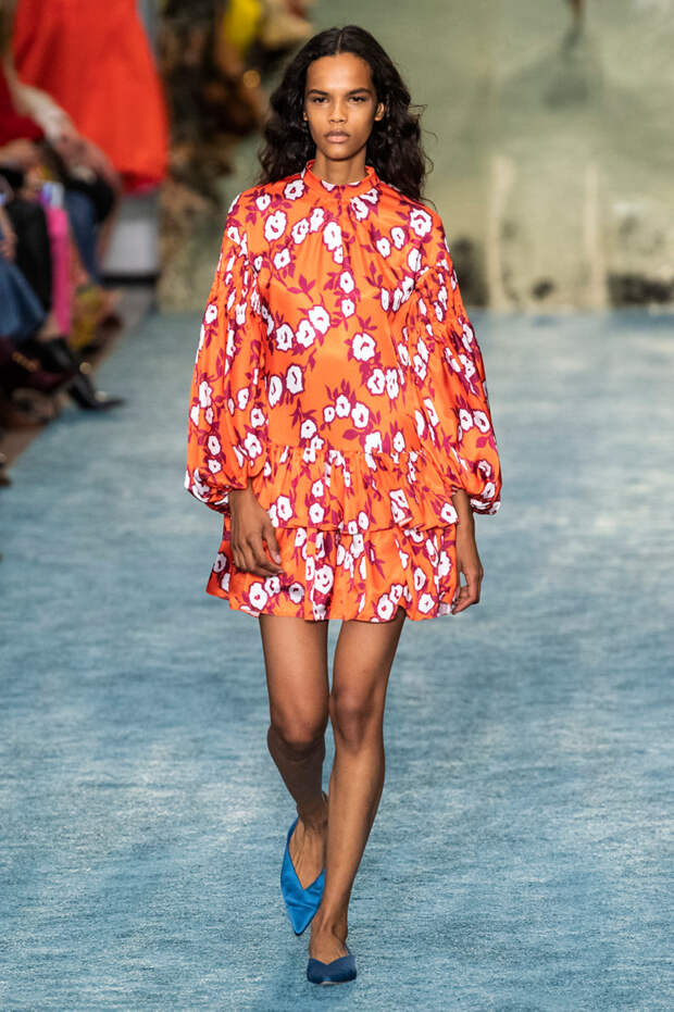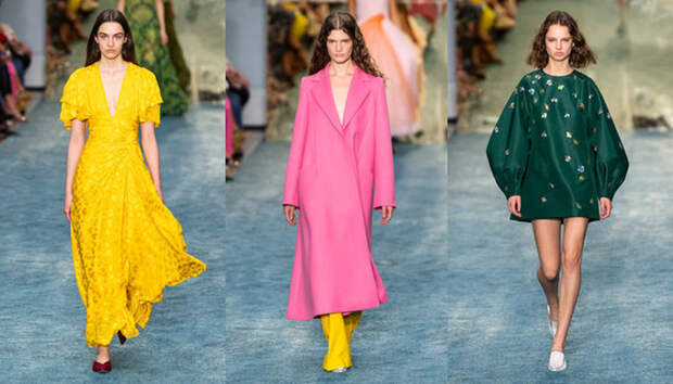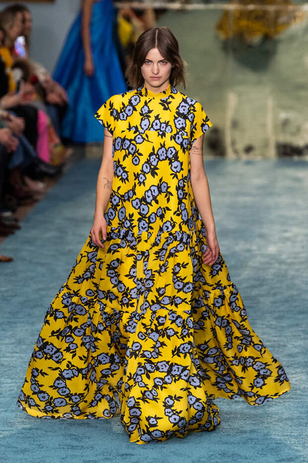 Так что осенне-зимний показ Carolina Herrera, прошедший сегодня в Нью-Йорке, пришелся как нельзя кстати.Уэст Гордон, креативный директор марки, начал сразу с козырей — открыл показ нежно-желтым летящим платьем, усыпанным голубыми цветами. И продолжал в том же духе, ни на одном образе не сбавляя оборотов: вот вам электрический синий, вот фуксия, вот оранжевый, вот синие маки на красном поле, вот салатовый и васильковый. А тех, кто еще не сдался весеннему настроению, под конец ждали кукольные платья с выложенными из камней жуками и огромные ирисы, вышитые пайетками на вечерних нарядах. Огромные — это не преувеличение: буквально от ворота и до пола.