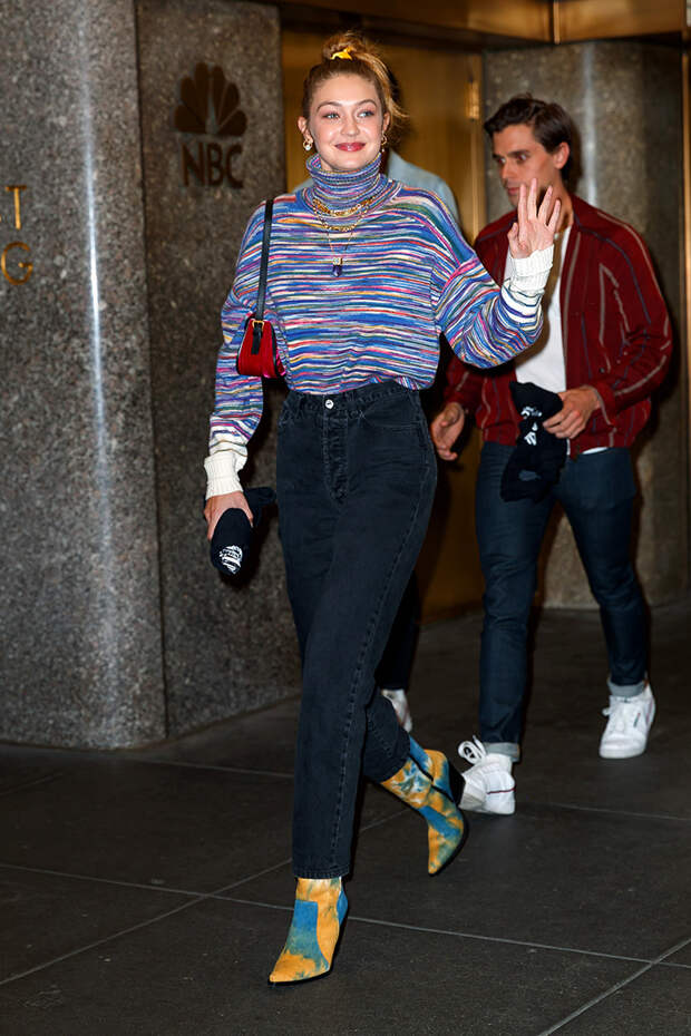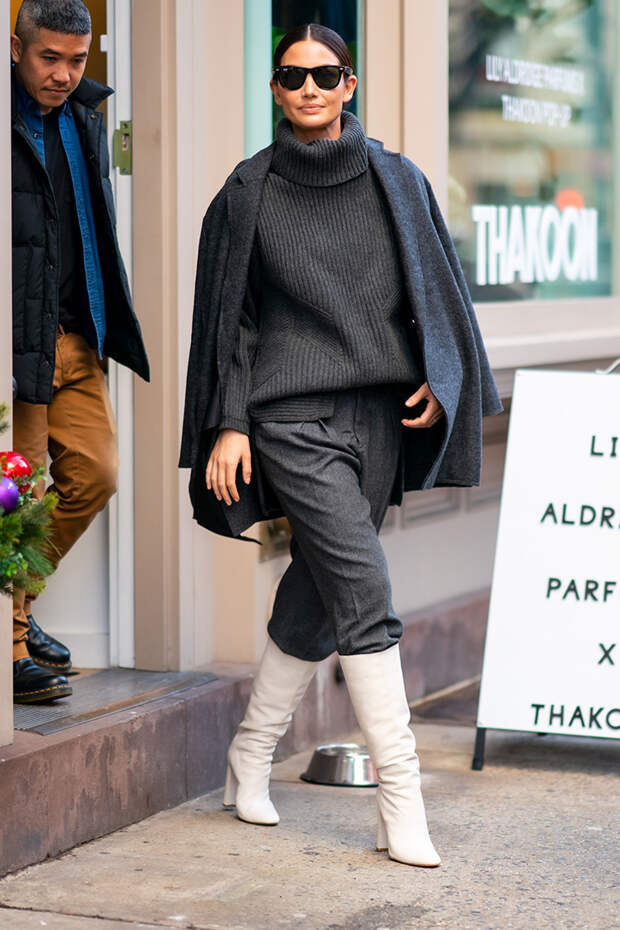От тонкого гольфа для лейеринга до объемного свитера с широким воротником-хомутом: звездные трендсеттеры не пренебрегают водолазкой в зимний период. Вдохновляемся их стремлением к комфорту и начинаем носить свитер с горлом по любому поводу. Например, в будни модели крупной вязки отлично смотрятся с серыми свободными джинсами из плотного денима.