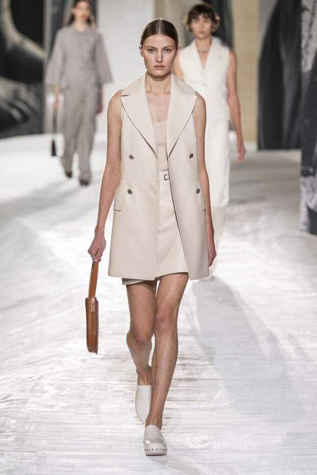 Надеж Ване-Цыбульски знает толк в минимализме: она, по сути, сформировала визуальный код всеми любимого The Row. В Hermès, который она возглавила после ухода из бренда сестер Олсен, она продолжает гнуть свою линию. Впрочем, в этот раз дизайнер, кажется, пошла еще дальше. Новая весенне-летняя коллекция французского Дома выглядит уже совсем аскетичной и лишенной каких-либо деталей.