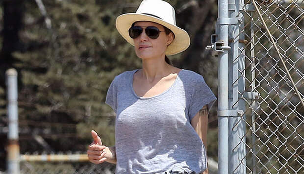 Андежлина Джоли – девушка непостоянная. То она приходит к компромиссу с экс-супругом Брэдом Питтом касательно опеки детей, то подает на него в суд, то надевает огромный черный балахон, то супер женственное платье без нижнего белья. Вчера настроение у актрисы было спортивное, поэтому мы можем наблюдать редкий кадр - Джоли в кроссовках, легинсах и футболке после хайкинга с детьми по Голливудским холмам.