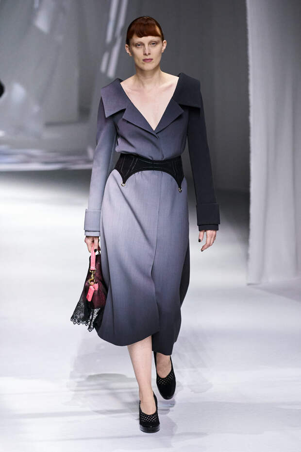 Если минувшей осенью акцентированные талии отсылали скорее к 80-м и стилю power dressing (потому и "рифмовались" обычно с маскулинными "плечистыми" жакетами), то для весны дизайнеры в основном приготовили нечто более романтичное. Теперь за счет стратегически расположенного ремня они стремятся создать самый женственный силуэт "песочные часы" — а это уже скорее история про 50-е и New Look. Сильвия Вентурини-Фенди надела соблазнительный пояс для чулок на изящное серое пальто. Виржини Виар в Chanel дополнила поясом классический твидовый костюм, чем "заострила" силуэт и сделала его заметно более свежим и современным (даже при всем очевидном винтажном флере). Раф Симонс и Миучча Прада соединили две диаметрально противоположные эстетики — и дополнили нейлоновыми ремнями ретро-комплекты из трикотажных водолазок и расклешенных юбок, как у героинь фильмов Хичкока. В Miu Miu же синьора Прада обратилась к игривым 60-м, дополнив коктейльные платья изящными черными лентами с бантами на талии.