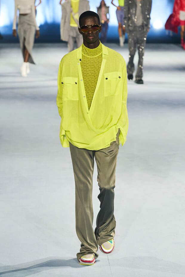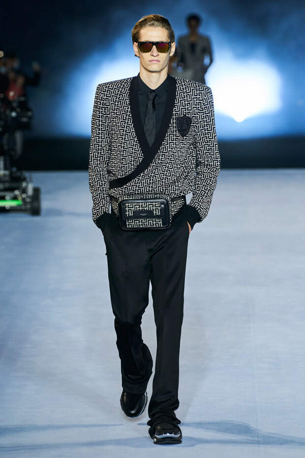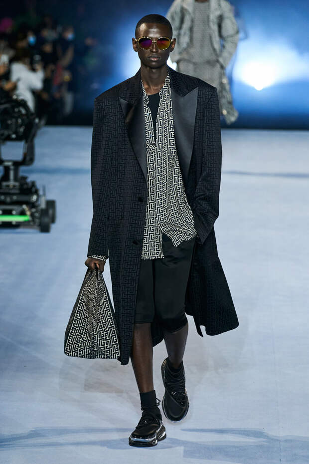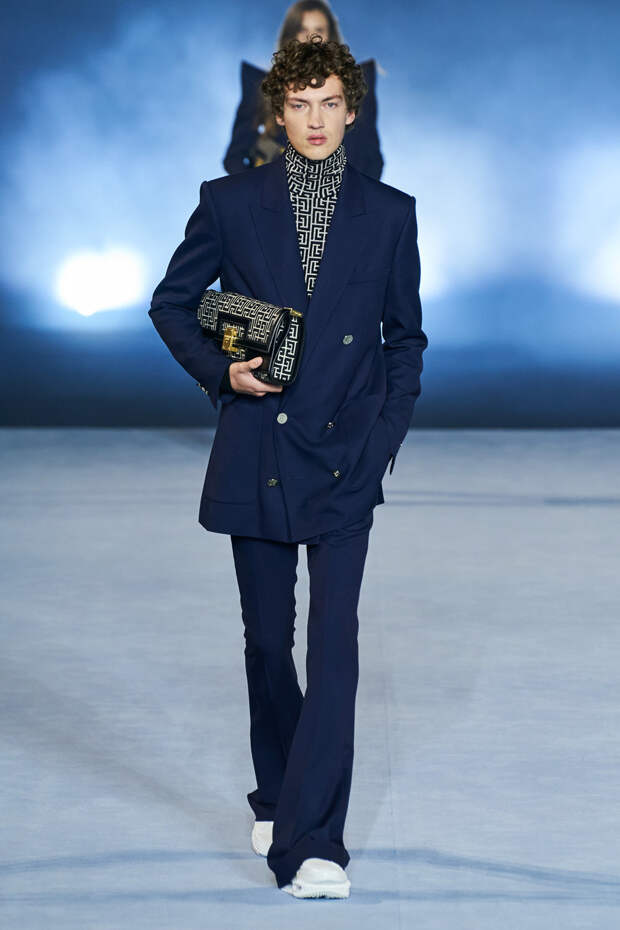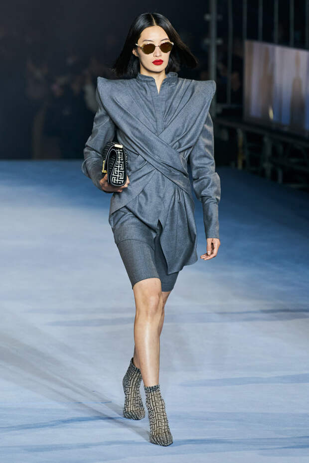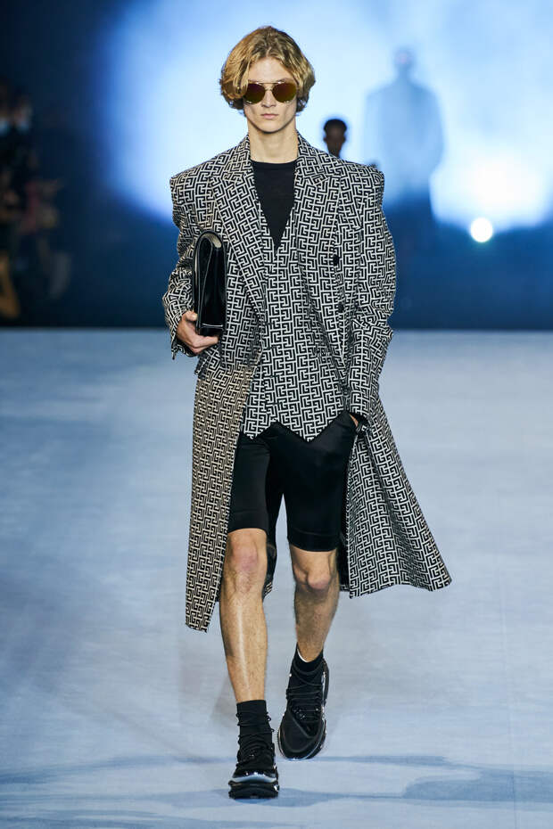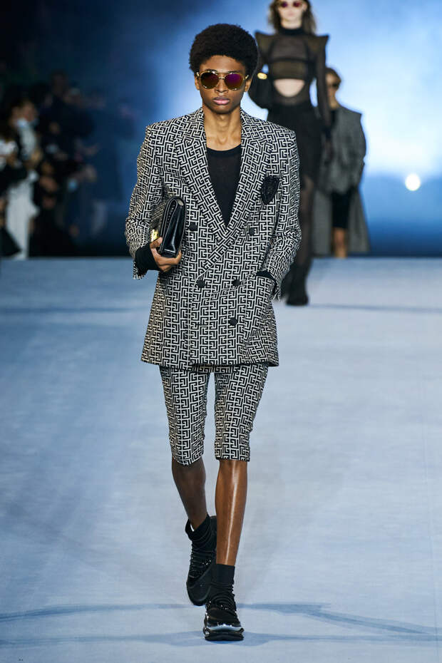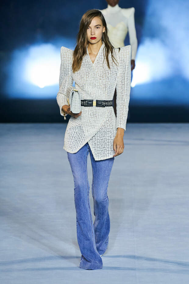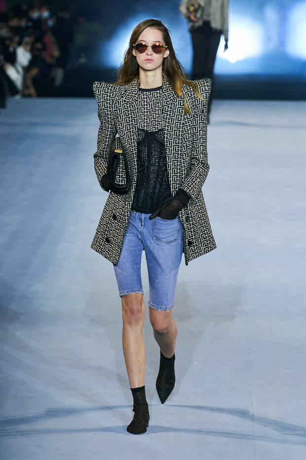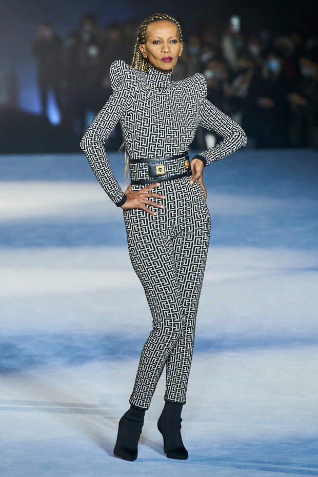 Еще одна важная находка этого сезона у Balmain — архивный принт с монограммой, вдохновленной парижскими садами-лабиринтами, который использовал Пьер Бальман в 70-х.