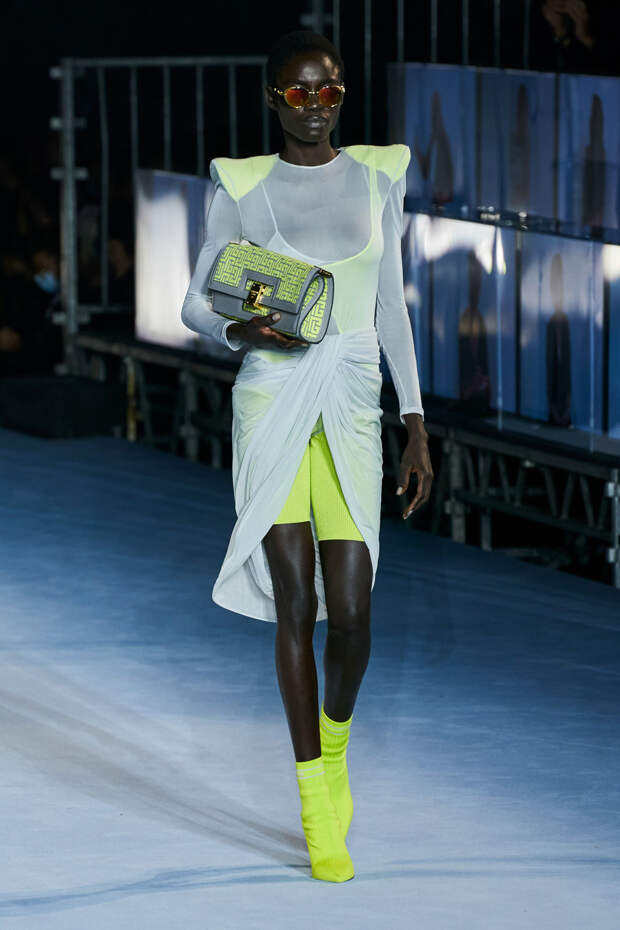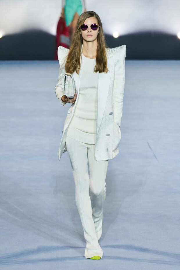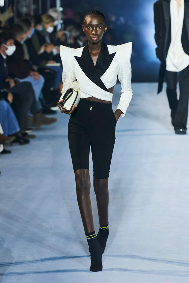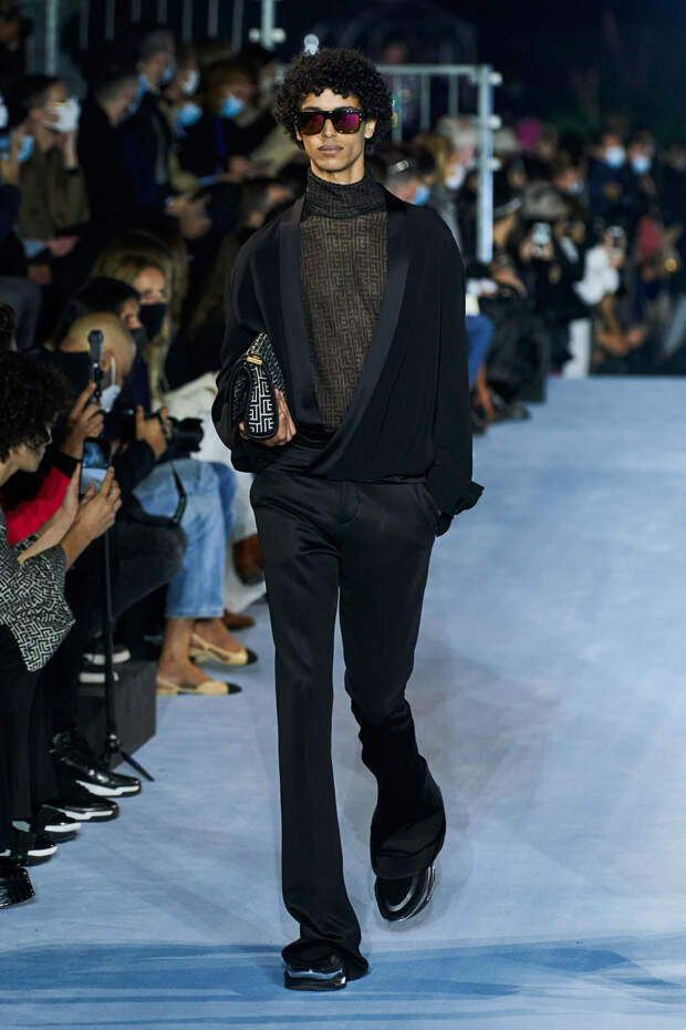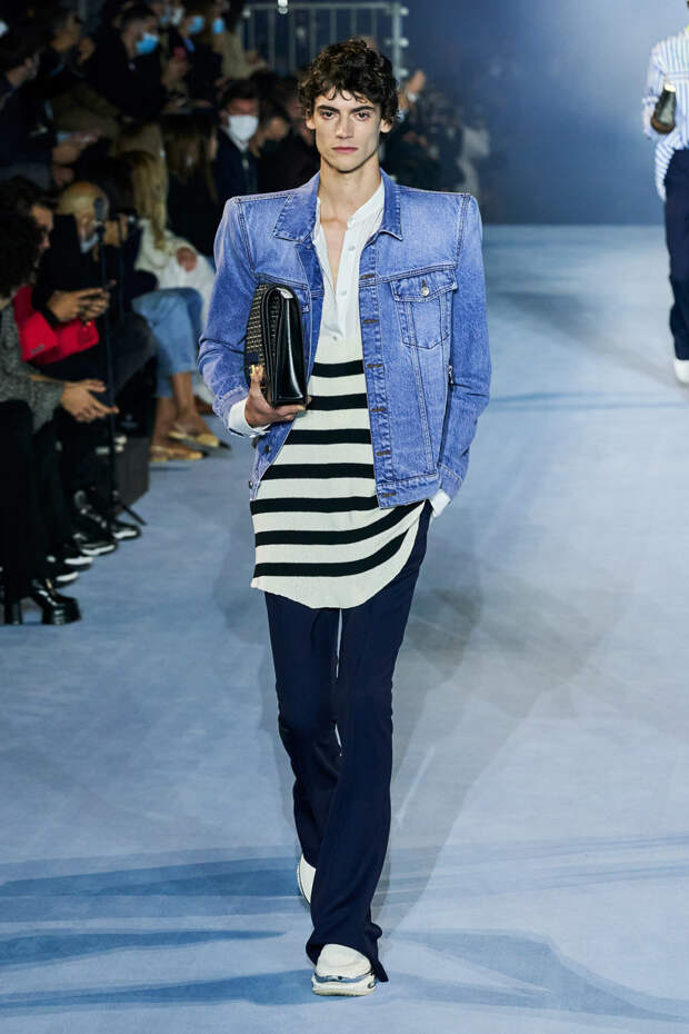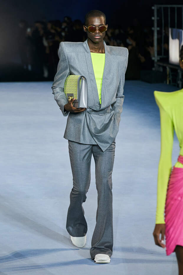 Желая указать на связь с корнями Дома, Оливье Рустен сделал в ткани с этим принтом целую серию луков в самом начале показа, а также новую знаковую вещь — клатч, который можно было купить онлайн прямо во время прямой трансляции. Надо сказать, он вполне может претендовать на статус новой it-bag. И даже не сомневаемся, что совсем скоро мы увидим целый десант модных девушек с этой новой сумкой — во всяком случае, подруги Рустена, сестры Хадид и Кардашьян-Дженнер, точно его поддержат в очередном начинании.
