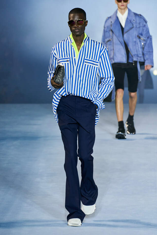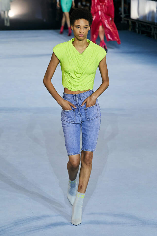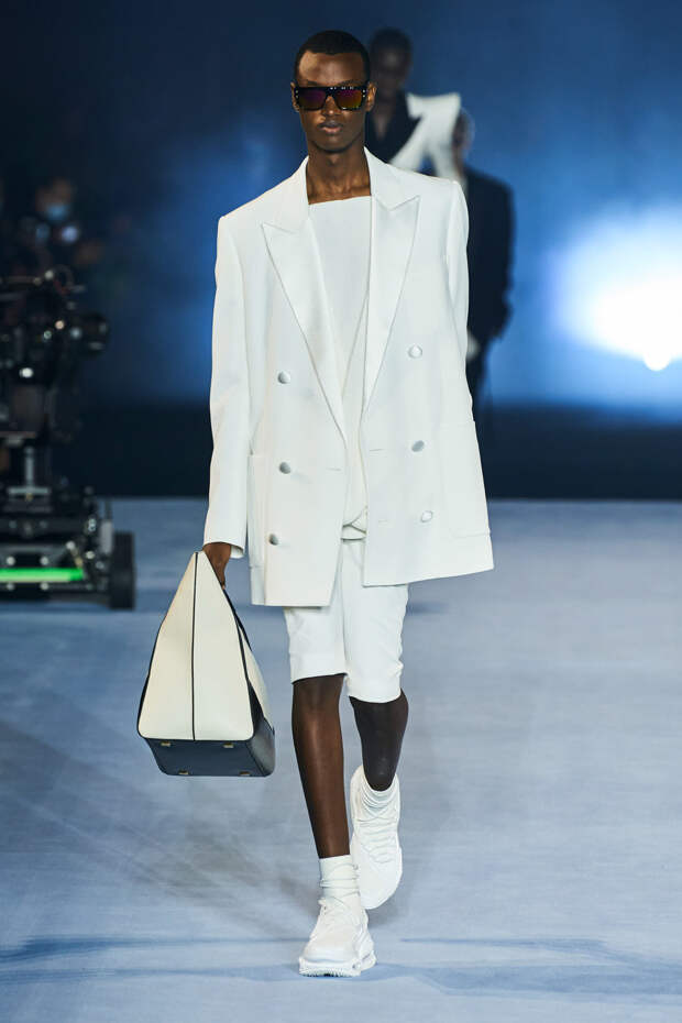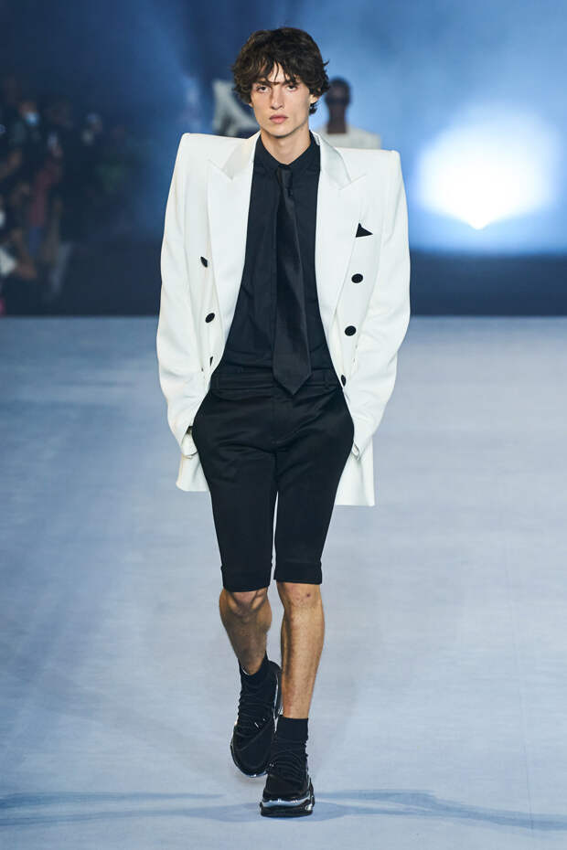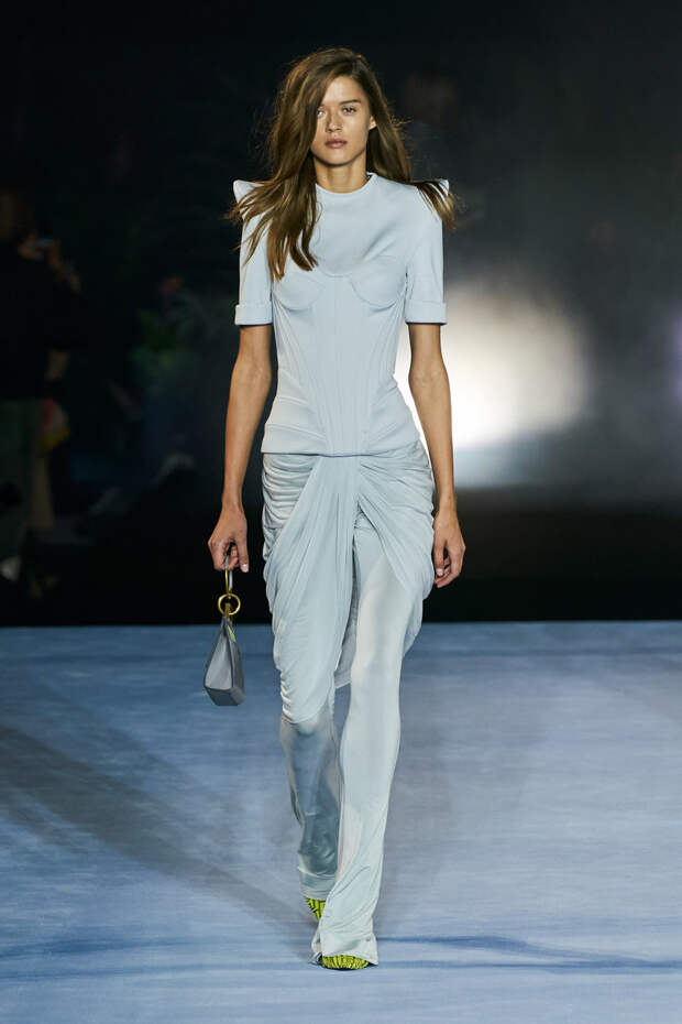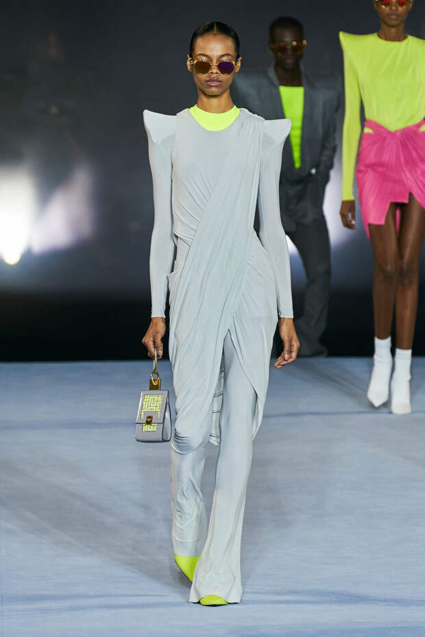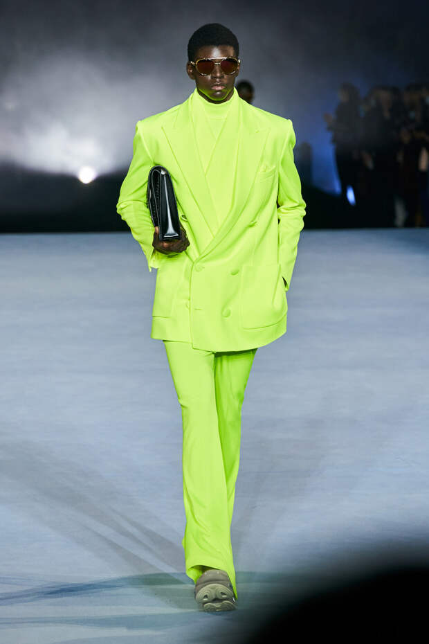 Желая указать на связь с корнями Дома, Оливье Рустен сделал в ткани с этим принтом целую серию луков в самом начале показа, а также новую знаковую вещь — клатч, который можно было купить онлайн прямо во время прямой трансляции. Надо сказать, он вполне может претендовать на статус новой it-bag. И даже не сомневаемся, что совсем скоро мы увидим целый десант модных девушек с этой новой сумкой — во всяком случае, подруги Рустена, сестры Хадид и Кардашьян-Дженнер, точно его поддержат в очередном начинании.