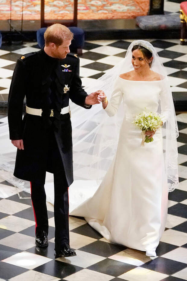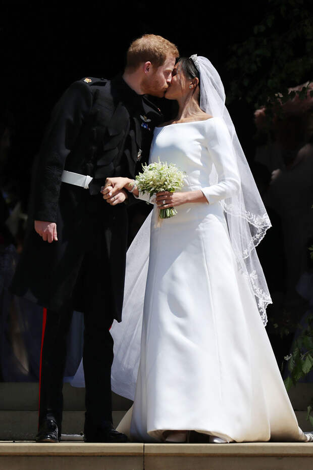 Торжество было похоже на сказку, и лишь один момент омрачал идиллию: отец Меган, Томас Маркл, перенес операцию на сердце и не смог вести дочь к алтарю (позже выяснилось, что дело не в здоровье, а в скверном характере), в итоге эту почетную обязанность исполнил принц Чарльз.Гарри в этот день и вправду напоминал принца из романтичных фильмов. При появлении Меган в часовне святого Георгия он отчетливо произнес: "Ты выглядишь потрясающе! Я скучал по тебе" — и больше не сводил восхищенного взгляда с возлюбленной. Для официальной церемонии сияющая невеста выбрала лаконичный образ от Givenchy авторства Клэр Уэйт Келлер, которая пришла в восторг от сотрудничества с Маркл: «Меган в жизни не отличается от своих экранных образов. Она искренняя, доброжелательная и светлая. Она светится изнутри. Меган — сильная женщина. Она хорошо знает, чего хочет, поэтому работать с ней — одно удовольствие».
