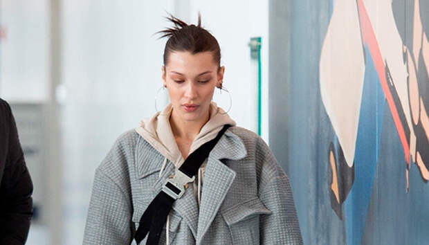Правило, что в комплекте должна быть лишь одна объемная вещь, а вторая - облегающая, чтобы подчеркнуть фигуру, у супермоделей не работает. Например, Белла Хадид не боится потеряться в широких брюках с карманами по бокам и просторном жакете. И не теряется. В таком виде ее застали папарацци в аэропорту Нью-Йорка - модель вернулась домой после недель моды, которые длились почти месяц.