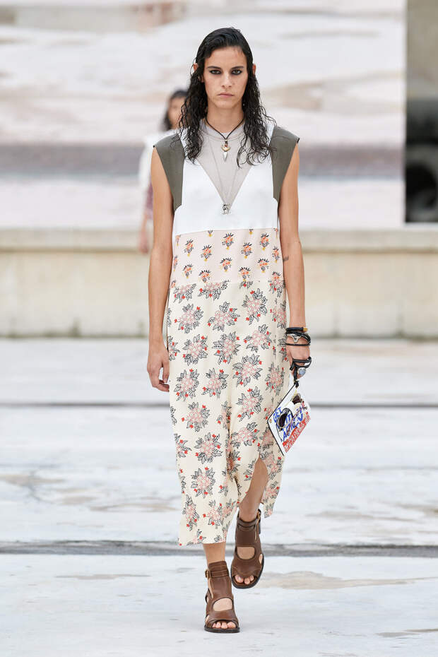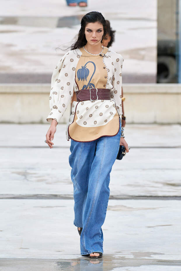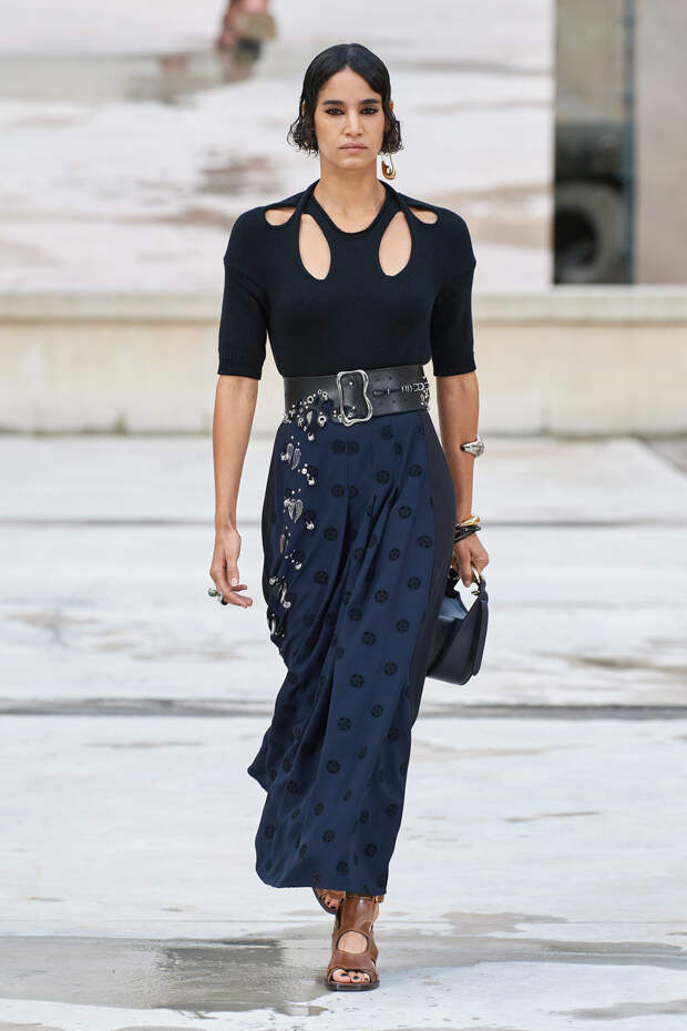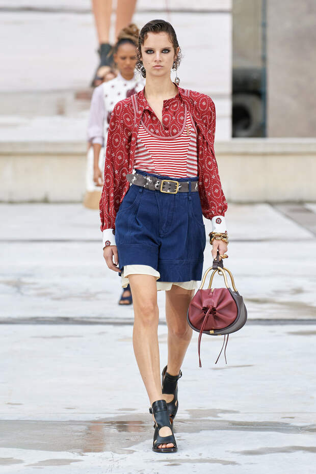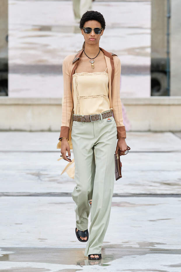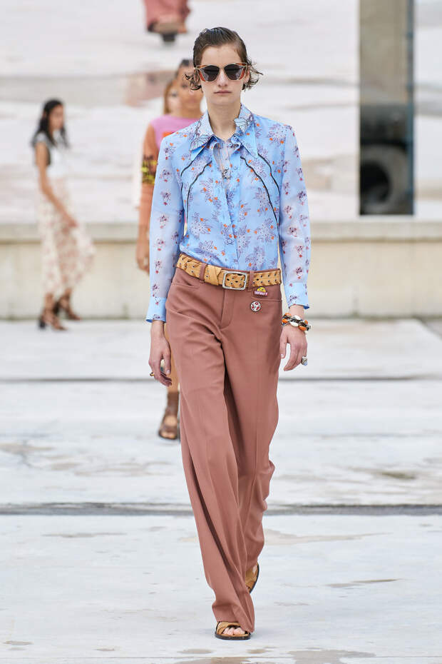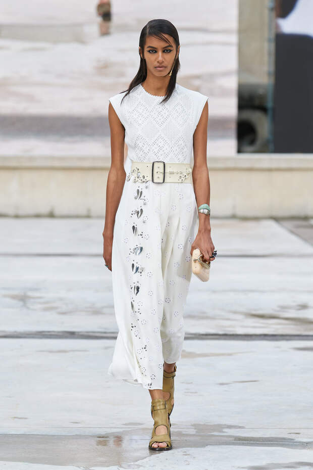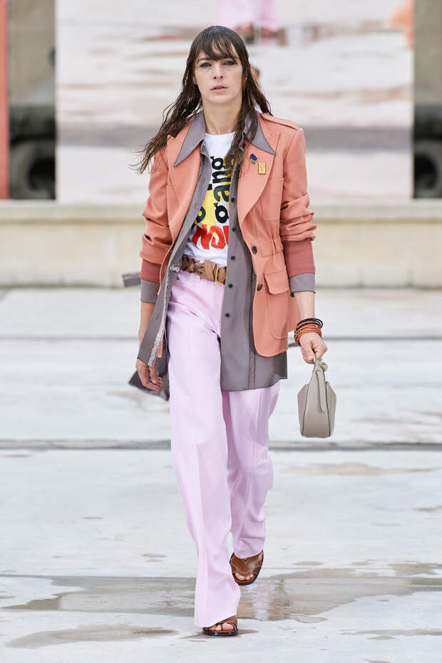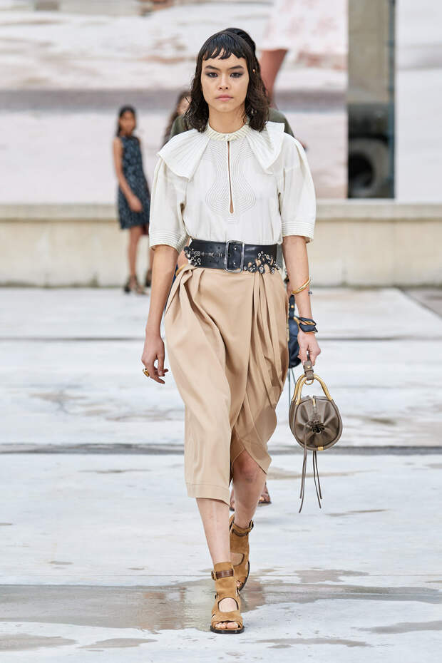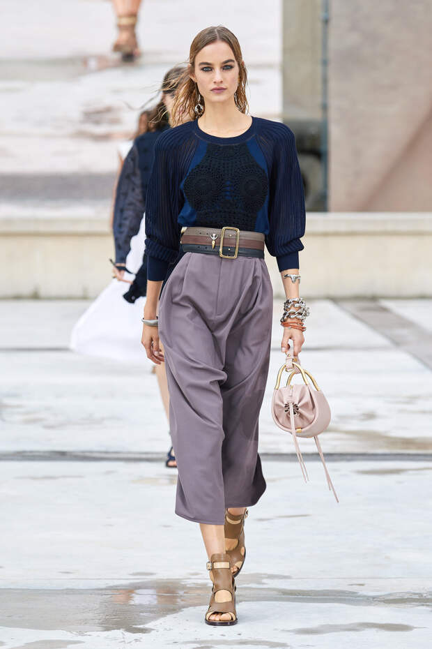 Никаких корсетных вставок, облегающего кроя или жестких чашек. Ничего, что сковывало бы движения. Только ощущение абсолютной свободы. Все дальнейшие луки были сделаны по той же схеме. Летящие юбки миди, широкие брюки с защипами на поясе, безупречно скроенные блейзеры и "мужские" рубашки — настоящий идеальный гардероб героини нашего времени. В нем нет ничего лишнего или случайного. Это вещи вне времени и на все случаи жизни. А дополнить их можно эклектичной бижутерией (особенно нам запомнились моносерьги — настоящий объект желания), идеальными сумками (миниатюрные хобо — отличный выбор и на каждый день, и для торжественных случаев) и удобными босоножками на устойчивом каблуке (в таких можно без труда проходить целый день). Все коллекции Chloé сделаны так, чтобы женщина могла прийти в их бутик и одеться буквально с ног до головы, не ломая голову над сочетаниями. При этом все эти вещи будут выглядеть актуально и в духе времени — как вместе, так и по отдельности. И дадут вам то удивительное ощущение свободы, которого нам всем так не хватало в последние месяцы.