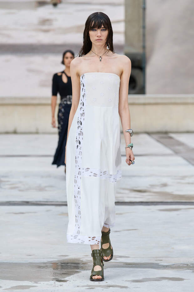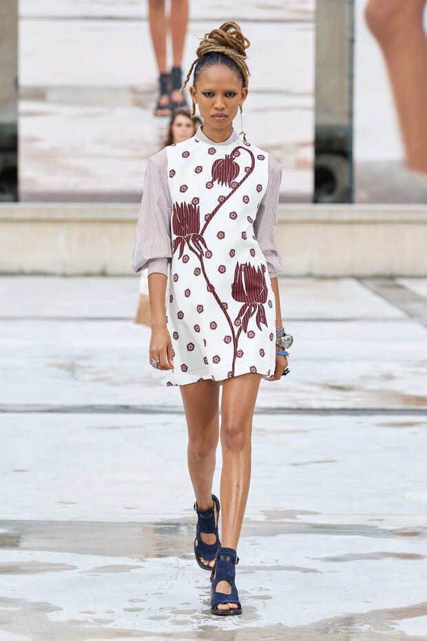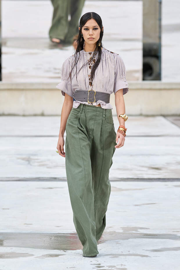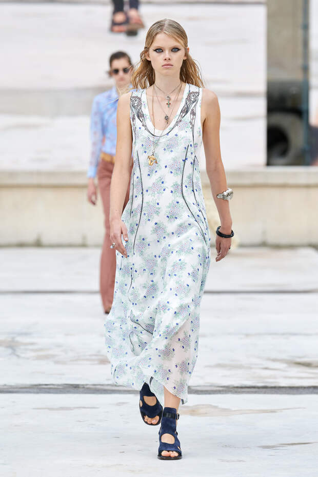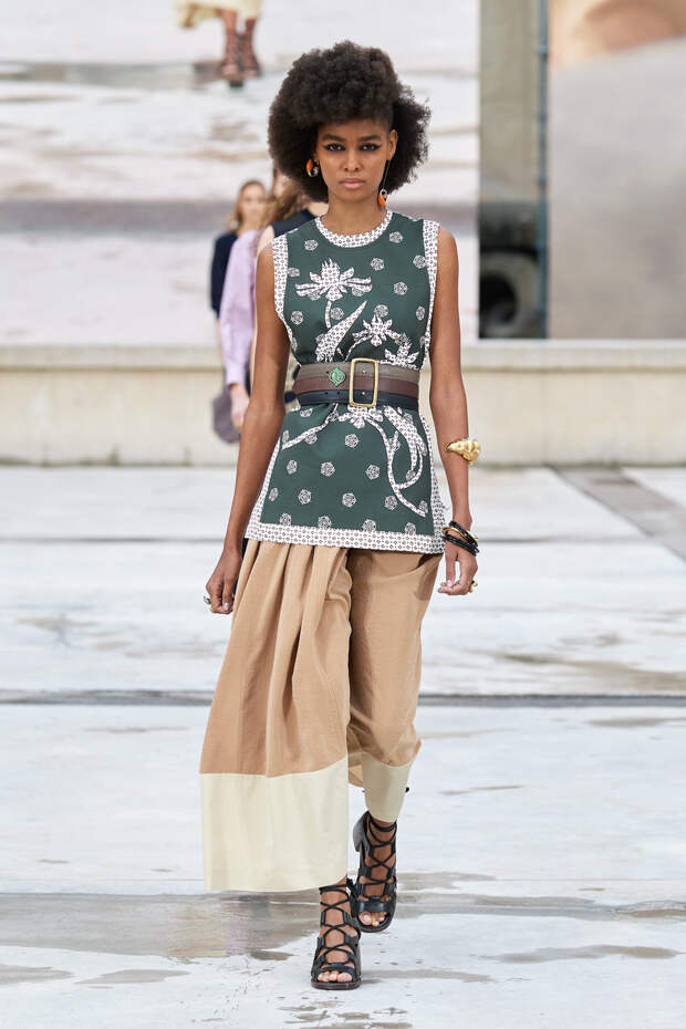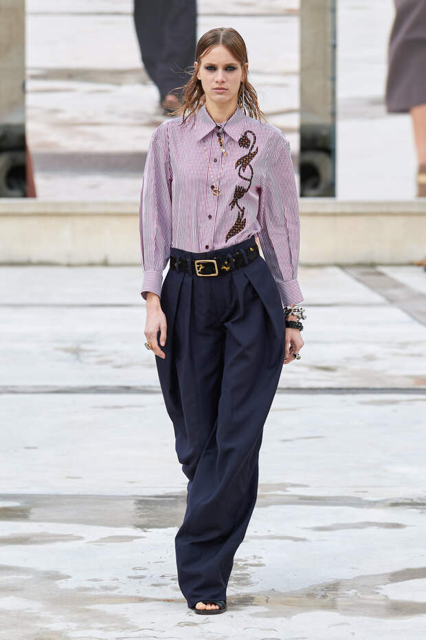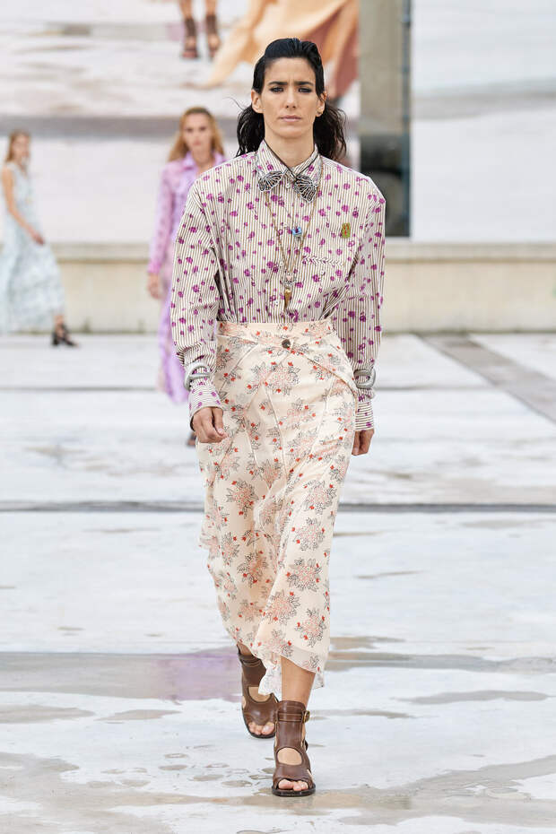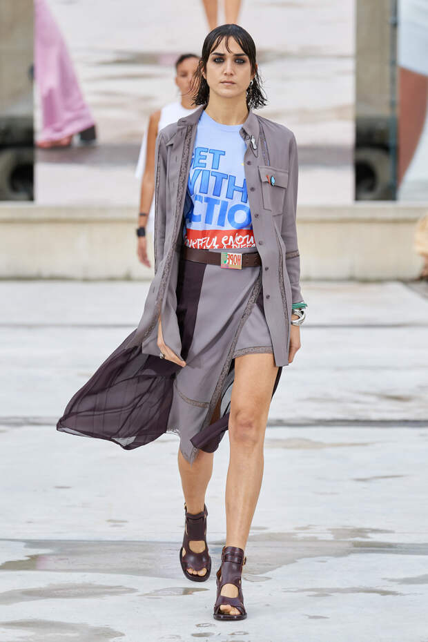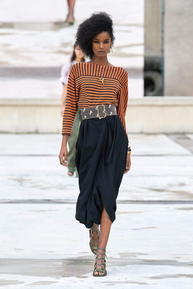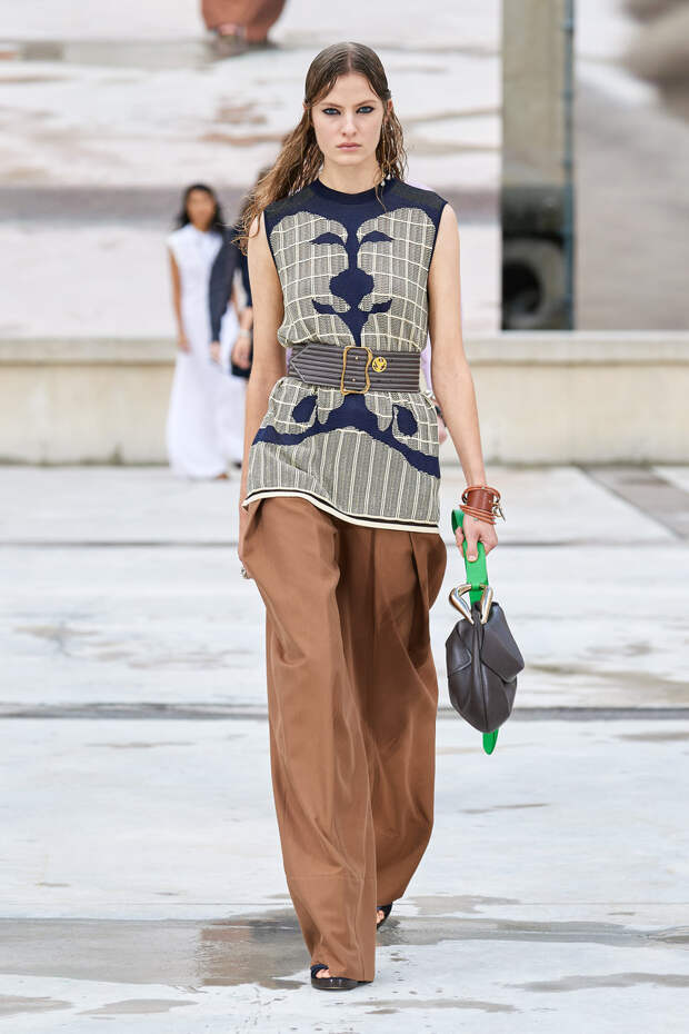 Никаких корсетных вставок, облегающего кроя или жестких чашек. Ничего, что сковывало бы движения. Только ощущение абсолютной свободы. Все дальнейшие луки были сделаны по той же схеме. Летящие юбки миди, широкие брюки с защипами на поясе, безупречно скроенные блейзеры и "мужские" рубашки — настоящий идеальный гардероб героини нашего времени. В нем нет ничего лишнего или случайного. Это вещи вне времени и на все случаи жизни. А дополнить их можно эклектичной бижутерией (особенно нам запомнились моносерьги — настоящий объект желания), идеальными сумками (миниатюрные хобо — отличный выбор и на каждый день, и для торжественных случаев) и удобными босоножками на устойчивом каблуке (в таких можно без труда проходить целый день). Все коллекции Chloé сделаны так, чтобы женщина могла прийти в их бутик и одеться буквально с ног до головы, не ломая голову над сочетаниями. При этом все эти вещи будут выглядеть актуально и в духе времени — как вместе, так и по отдельности. И дадут вам то удивительное ощущение свободы, которого нам всем так не хватало в последние месяцы.