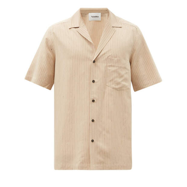В этом году совсем не обязательно искать гавайскую рубашку с классическим дизайном. Многие бренды используют стандартный фасон, но выбирают необычные принты и расцветки. К примеру, Nanushka предлагает версию песочного оттенка в полоску, а Sandro — розовую с анималистическим узором. У Jil Sander можно найти однотонные рубашки цвета хаки, напоминающие о стиле сафари.