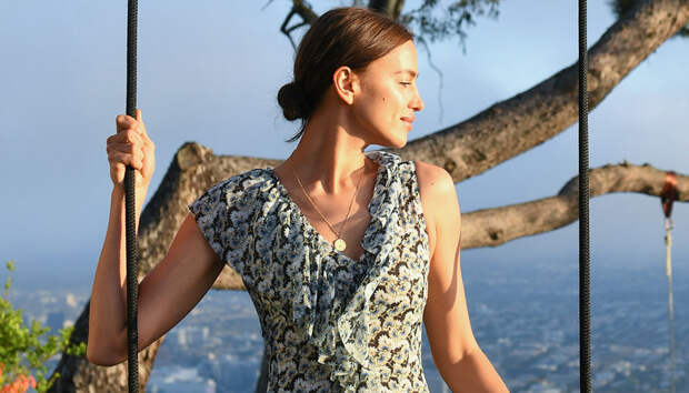 Качели на дереве - что может быть романтичнее? Ирина Шейк тоже оценила этот "аттракцион" и провела на нем добрую половину презентации новой коллекции H&M Conscious Exclusive, снимая живописные stories для подписчиков в Instagram. На ней было надето летящее платье с оброками и асимметричным подолом, благодаря которому во всей красе можно было рассмотреть подтянутые ноги топ-модели.