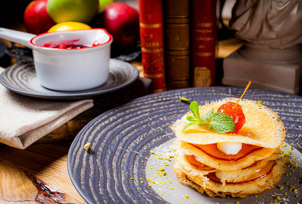 Бренд-шеф «Матрёшки» Влад Пискунов ждёт всех на очередной «Московский обед» - в этот раз темой стала Масленица с её гуляньями и карнавалами. Оказывается, сейчас Мясопустная неделя, поэтому вместо мяса станут кормить рыбными деликатесами, молочными продуктами и выпечкой. Помимо ассорти начинённых блинов (красные блины с форшмаком, гречневые с грибами и овсяные с рассольным сыром), подадут кундюмы с нежной капустой и белыми грибами, печенный в золе картофель с муссом из цветной капусты и стерляжьей икрой и не только.