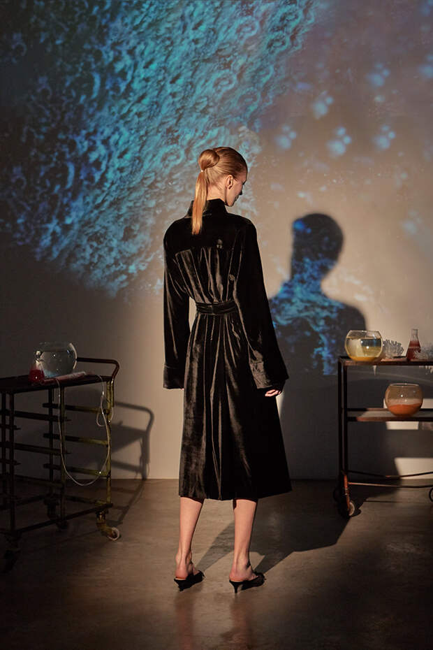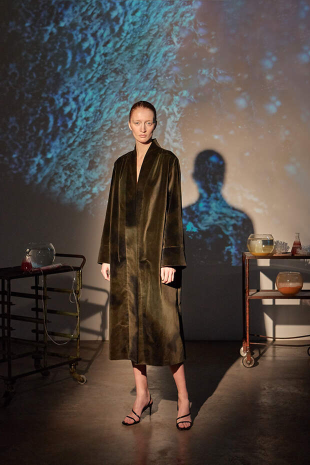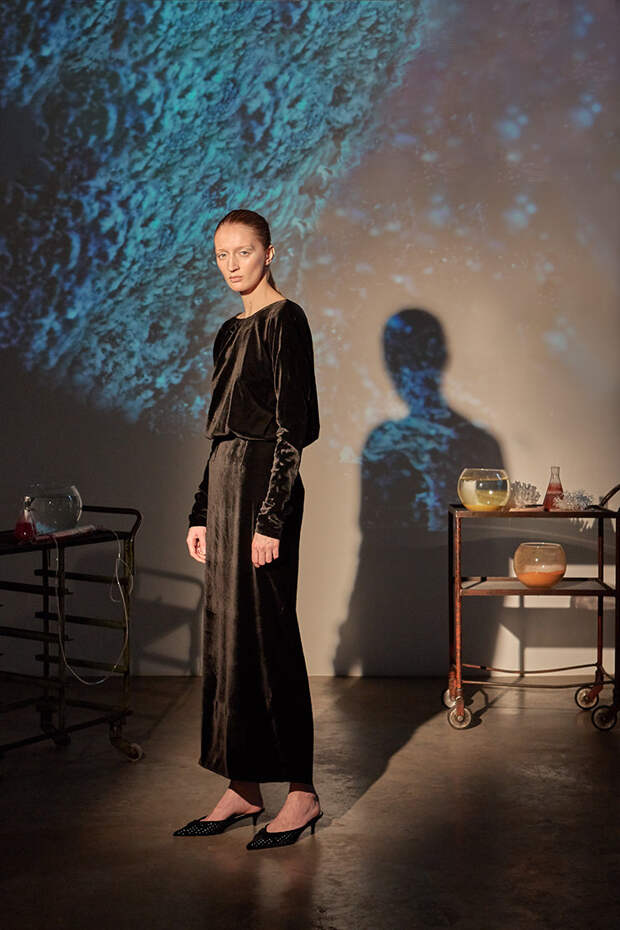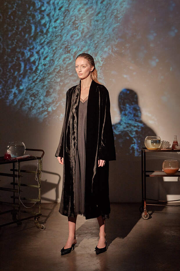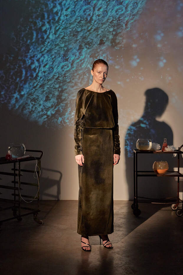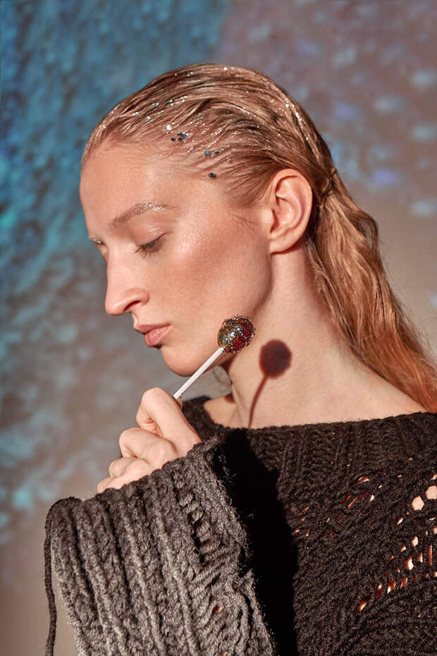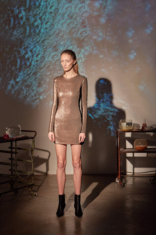 Лейтмотивом стала тема морской фауны. Сексуальные мини-платья, сшитые будто из блестящих водорослей, и объемные свитеры с градиентом, похожим на пену от волн, - такие наряды созданы для уютной зимы, но всегда будут напоминать о бушующем океане и свежем бризе.